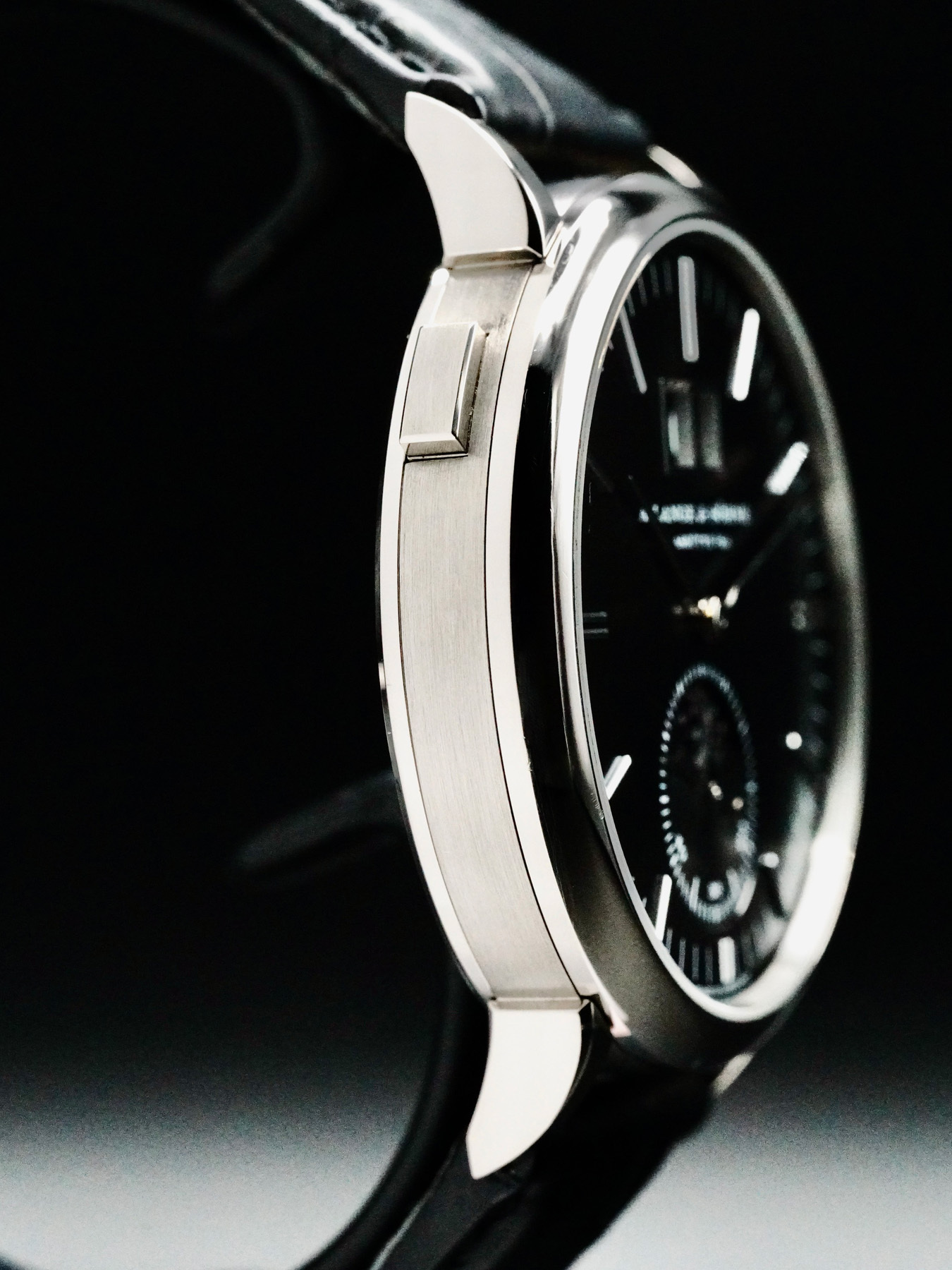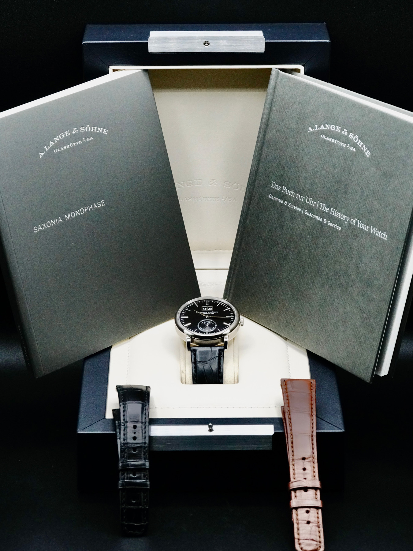 This A. Lange & Söhne 384.029 Saxonia is in GREAT condition. This watch includes its Original Box, Original Papers and Warranty Card not dated. Extra brown leather and black leather straps. This watch has been fully authenticated and certified by Exquisite Timepieces.