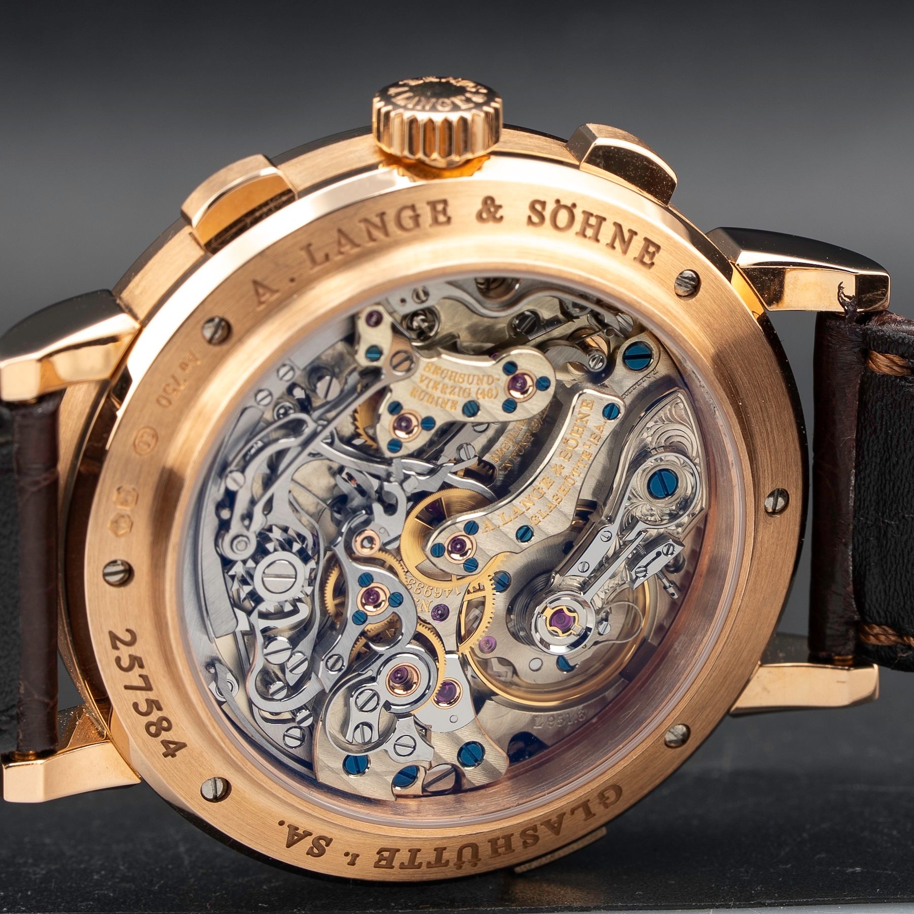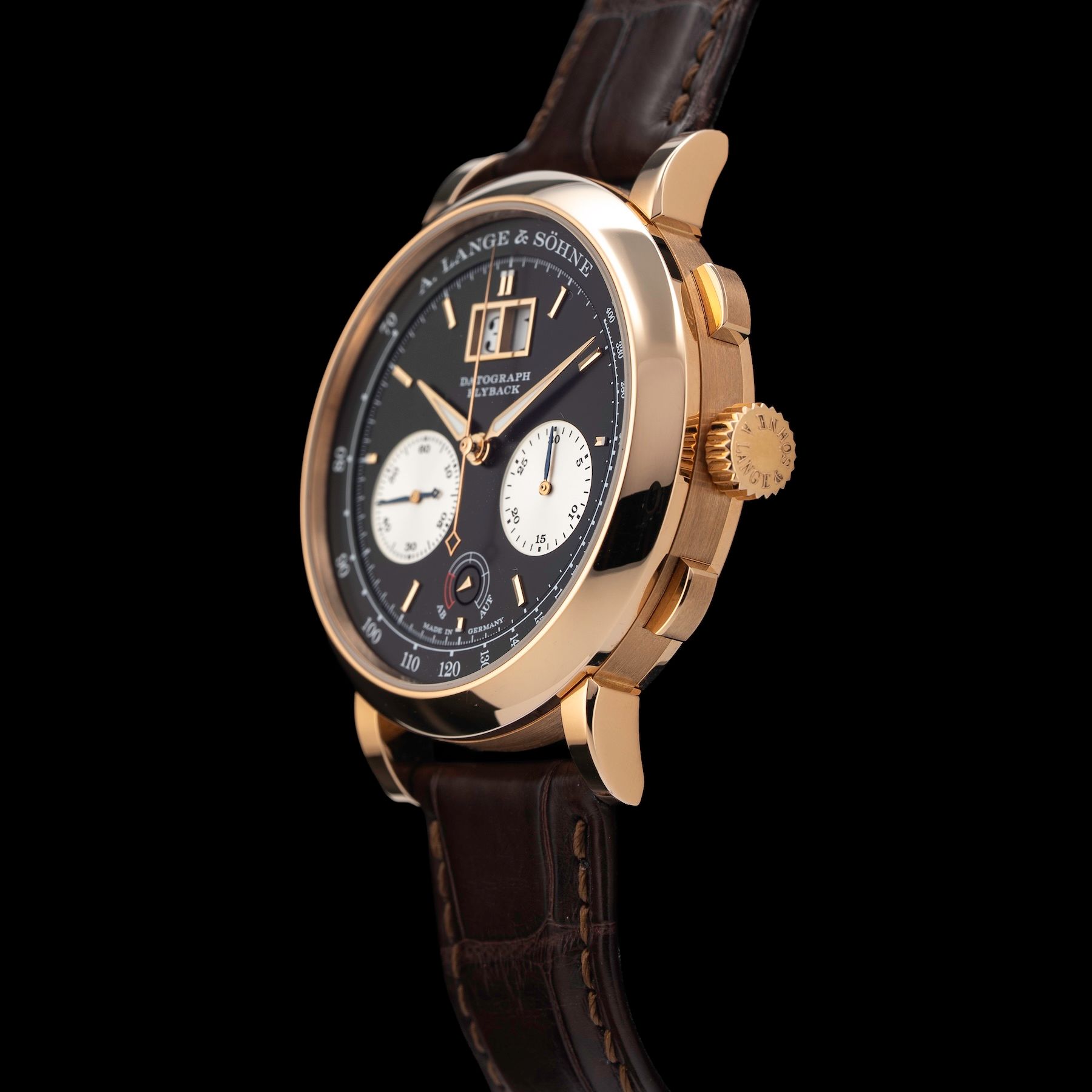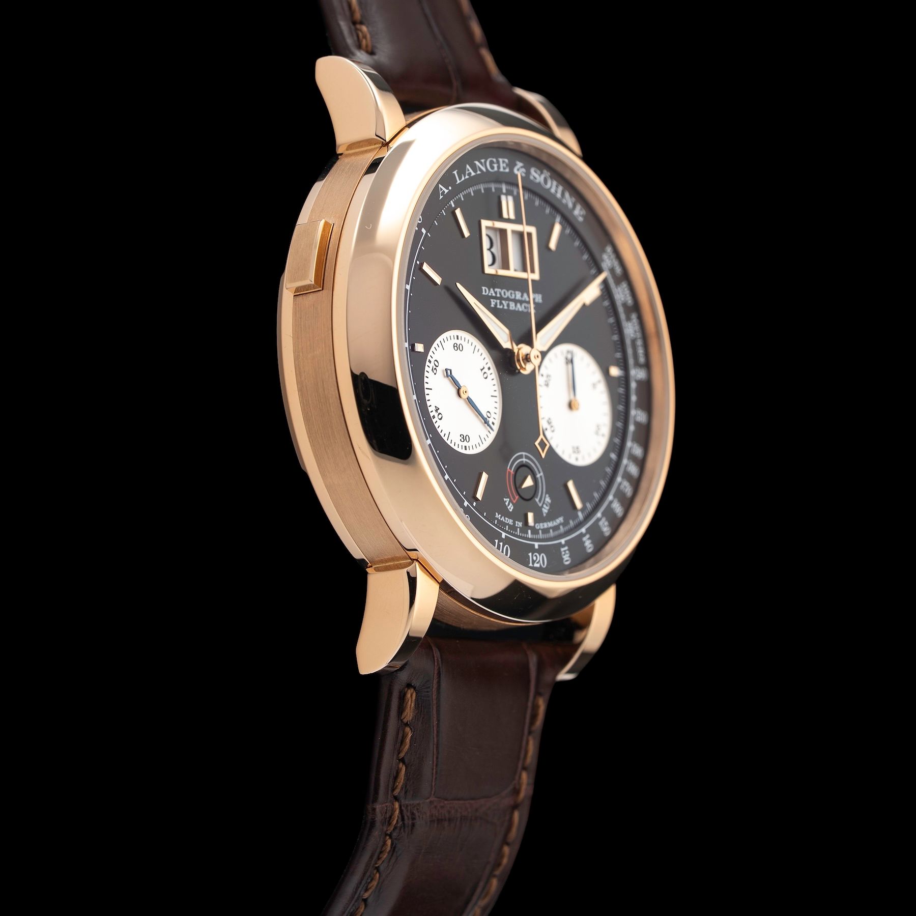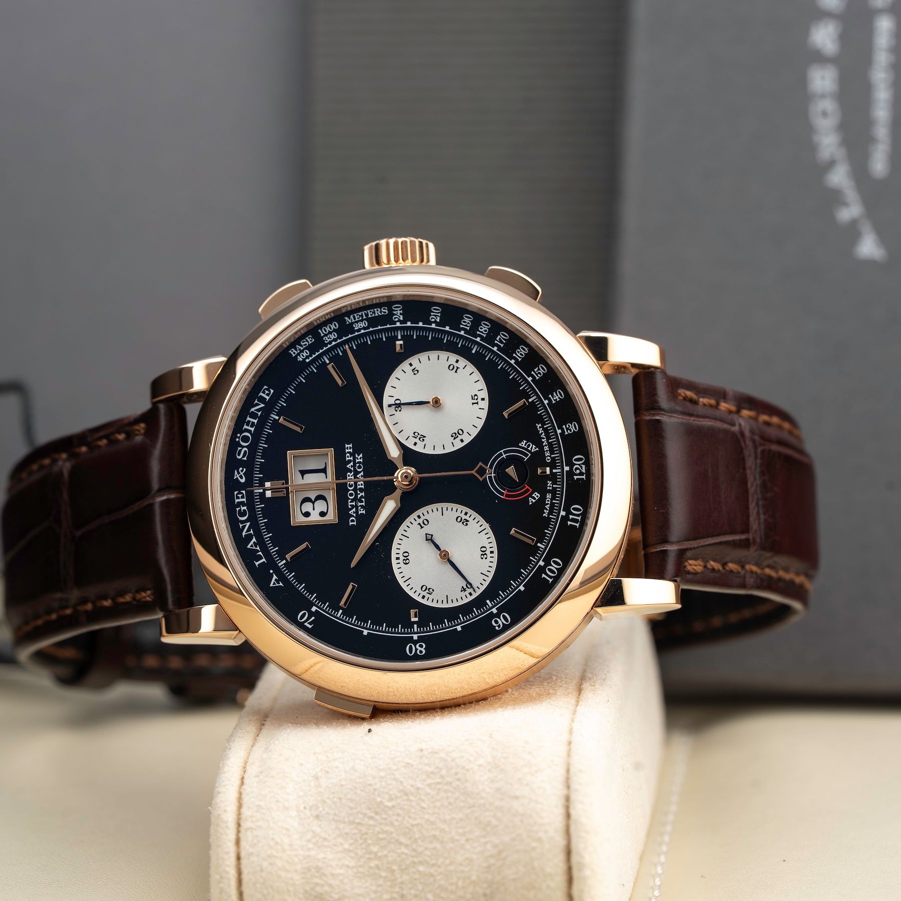 This A. Lange & Sohne Datograph Up/Down in 750 Pink gold 405.031 is in GREAT condition. This watch includes its Original Box, Original Papers, Warranty Card dated 6/15/22. This watch has been fully authenticated and certified by Exquisite Timepieces. Please note, the photos shown are of the actual watch you will receive.