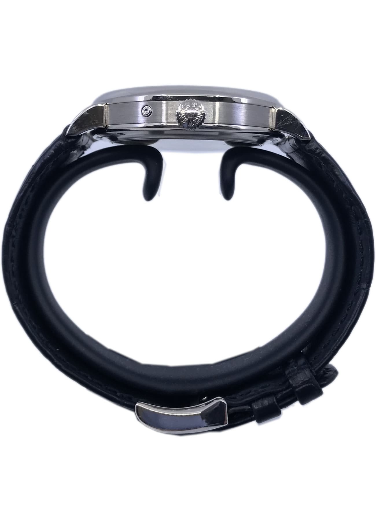- This timepiece features a 40mm gold case paired with a high quality leather strap. It showcases a distinctive silver dial and is powered by a precise automatic winding movement. The watch is designed with a water resistance of up to 30m.