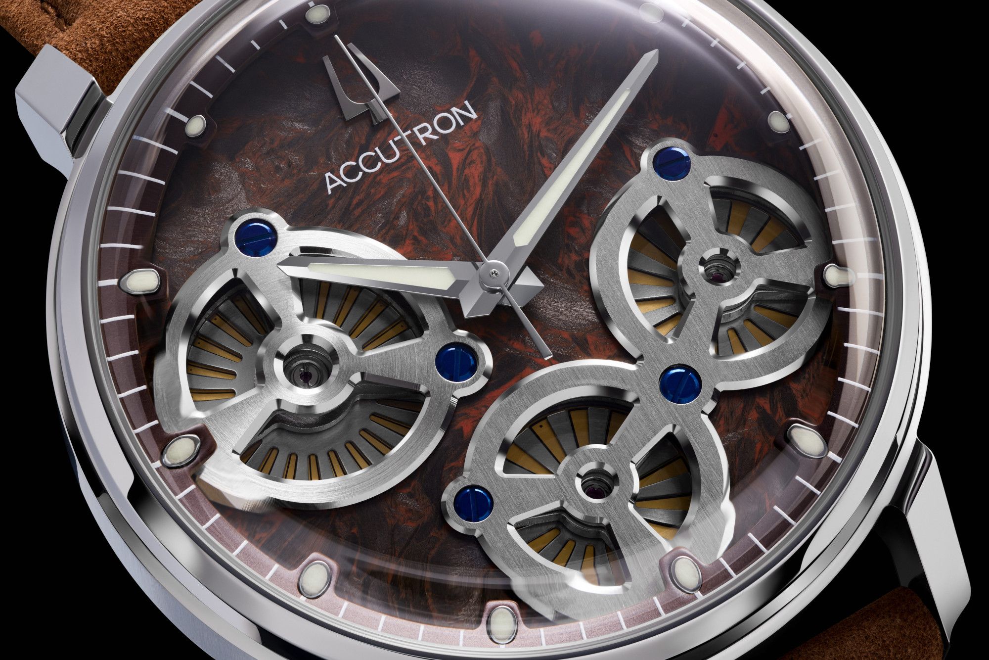 Building on the success of Accutron’s groundbreaking electrostatic movement, the Spaceview Evolution collection marks the next chapter in the brand’s storied history with the introduction of forged carbon dial timepieces.