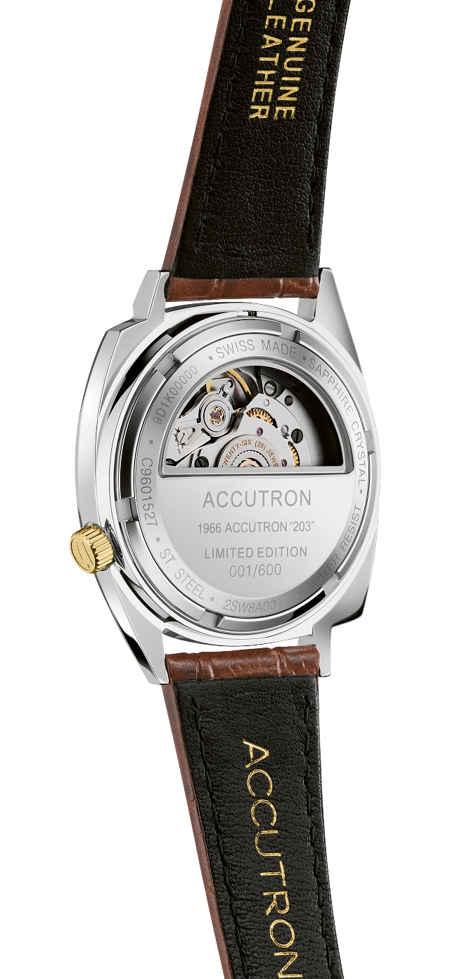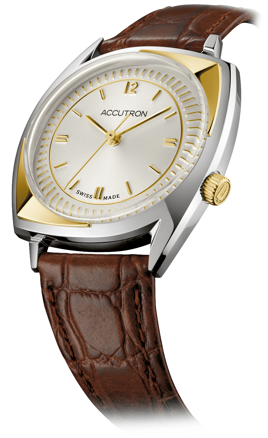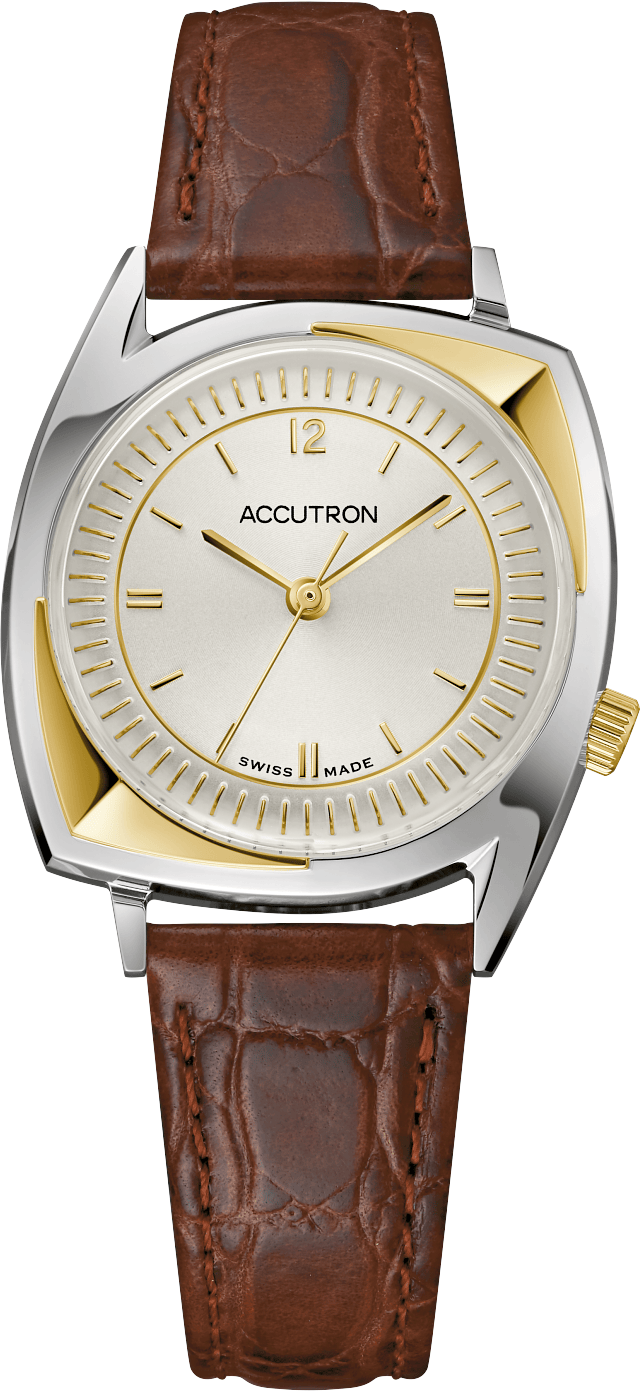 Taking its design from the iconic “203” from the 1960s, this Accutron Legacy collection watch is visually striking with its distinctive asymmetrical case design. The gold- and silver-tone stainless steel case features a 3-hand champagne dial, Arabic numerals, and fine-line stick markers on the outer ring. It has a brown croco-embossed leather strap with a double-press closure and uses a Swiss-made 26-jewel movement for quality and reliability in a luxury timepiece today. You aren’t content to blend into the background — your watch shouldn’t either. With this eye-catching, limited-edition timepiece, you’re sure to stand out.