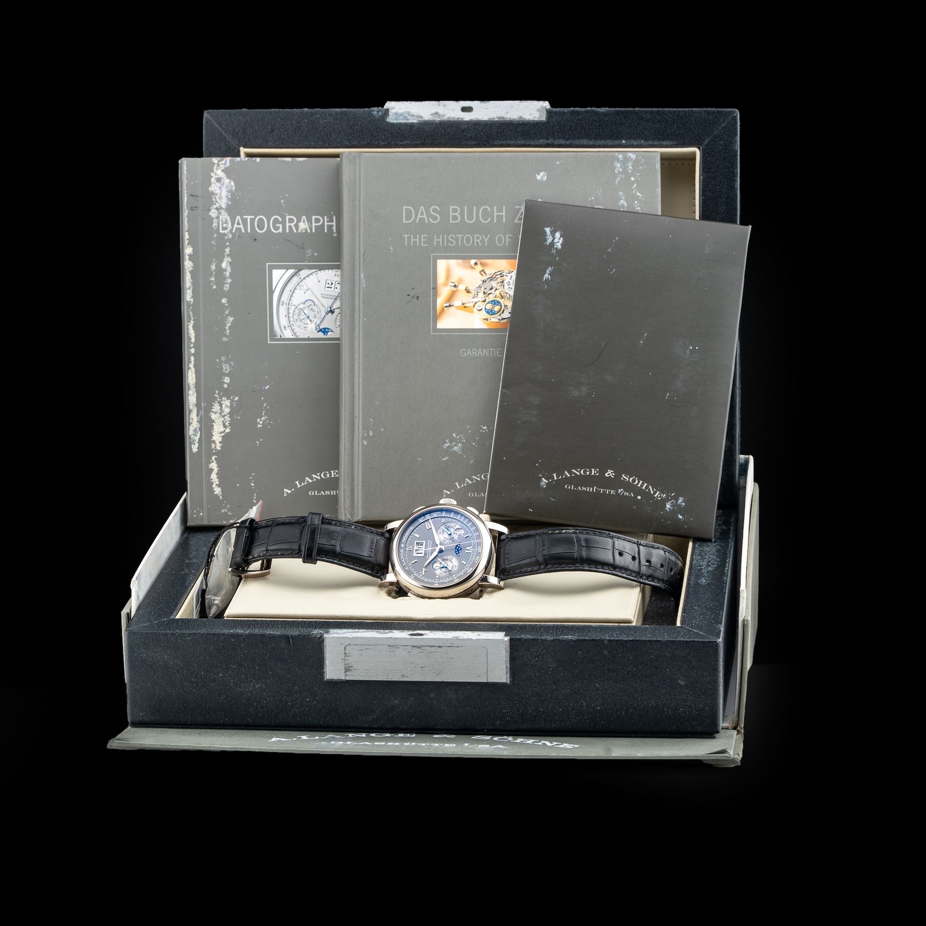This A.lange & Sohne Detograph Perpetual 410.030.E/L S4103AP is in GREAT condition. This watch includes its Original Box, Original Papers. This watch has been fully authenticated and certified by Exquisite Timepieces. Please note, the photos shown are of the actual watch you will receive.