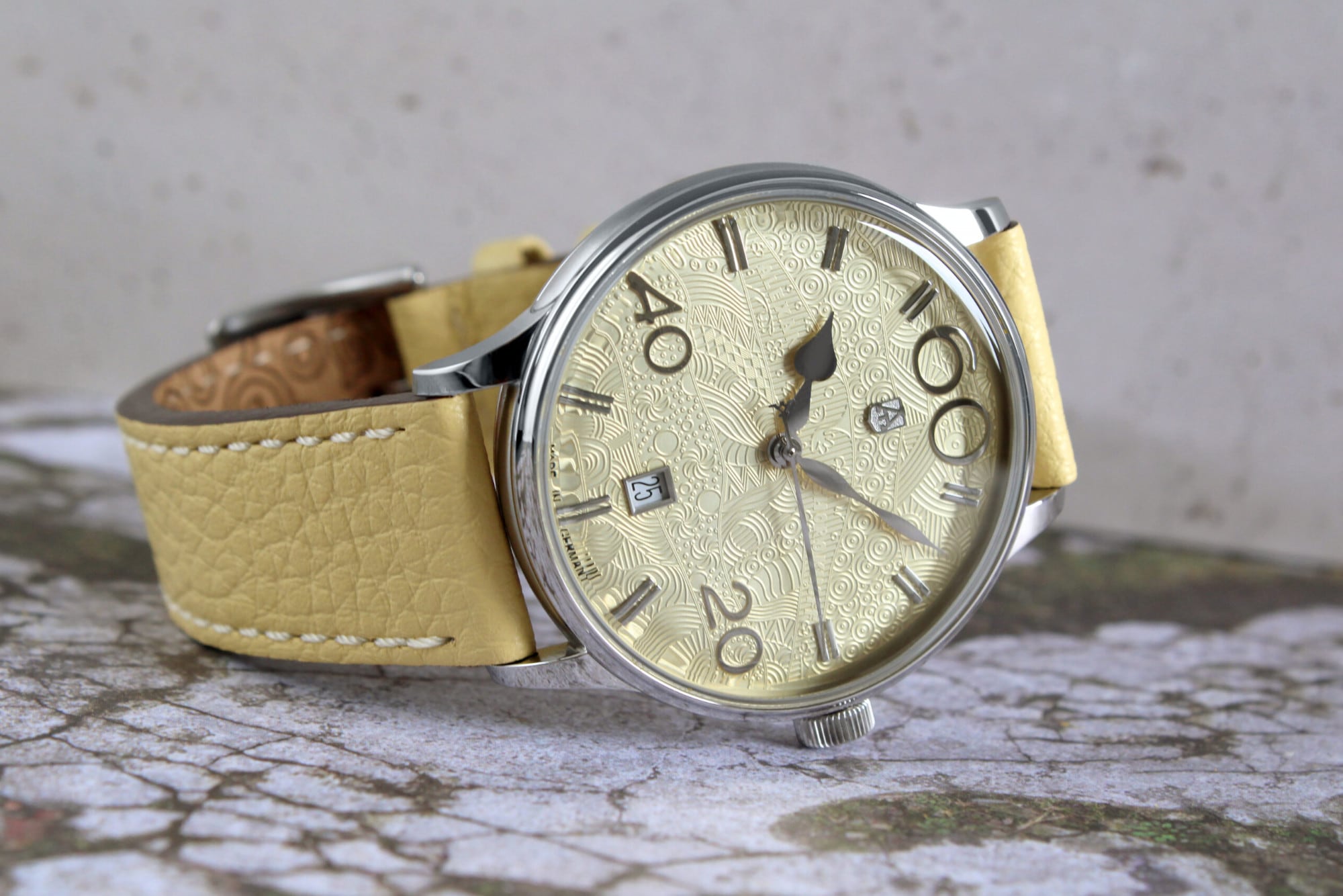 The dial is completely covered with an avant-garde pattern that creates an extraordinary and artistic overall picture. This watch is made for enjoyment – time deliberately fades into the background.