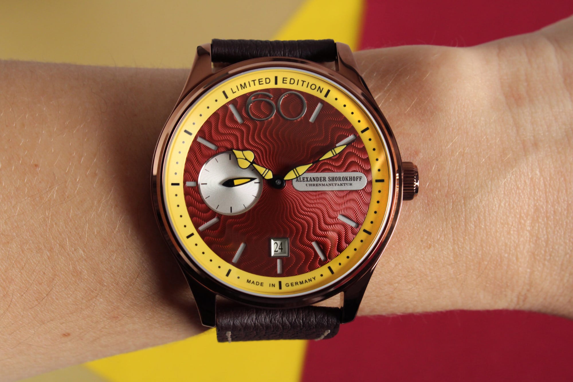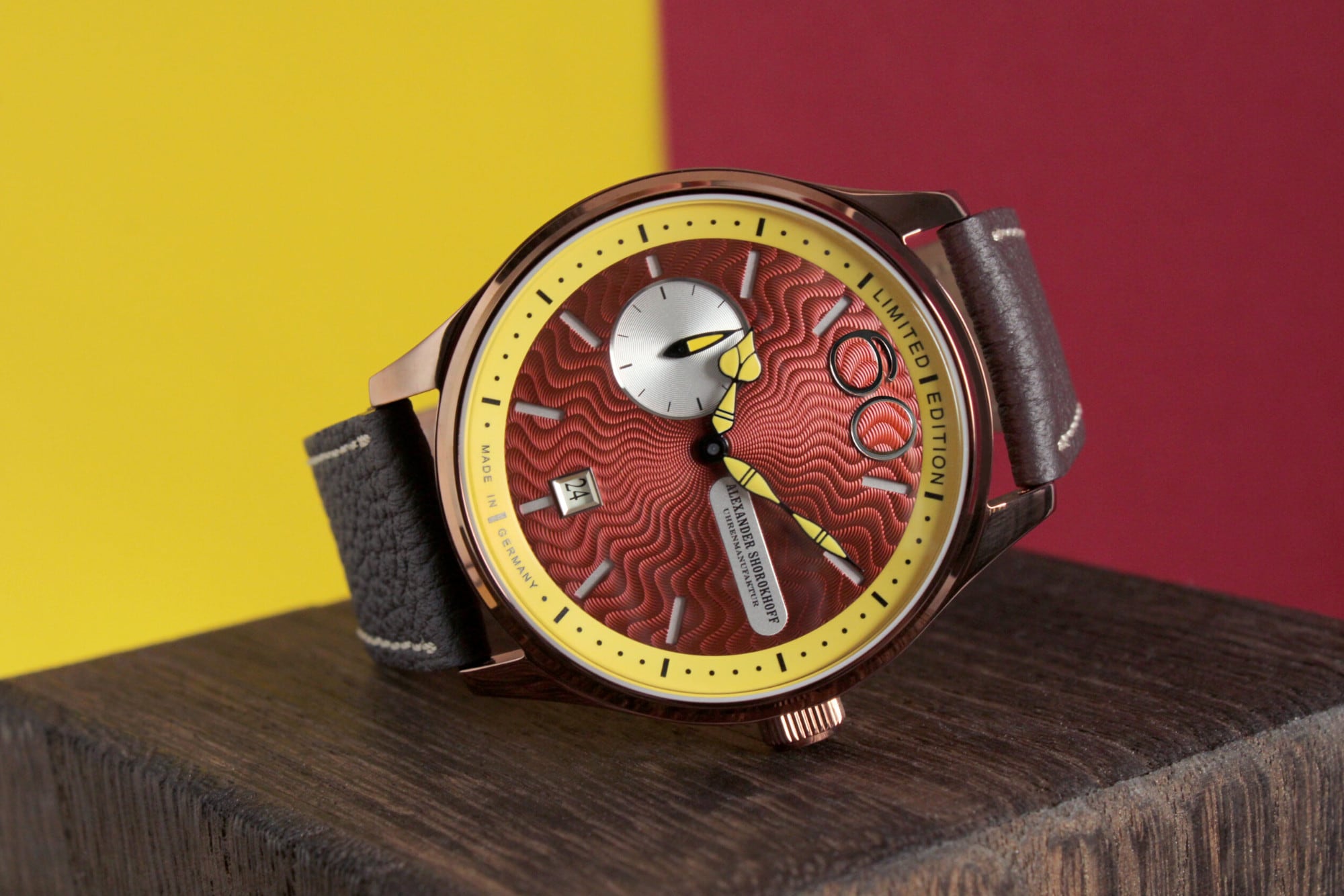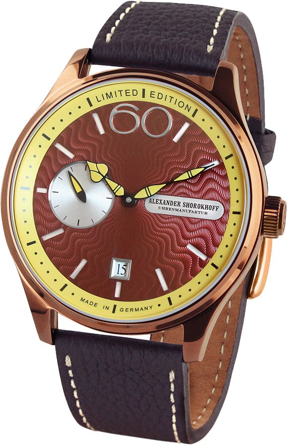 The elegant case with brown IP coating, the finely guilloché dial with a wave pattern, and the exceptionally soft, supple calfskin strap give the watch its unmistakable Alexander Shorokhoff character – a combination of artistic ambition and traditional craftsmanship.