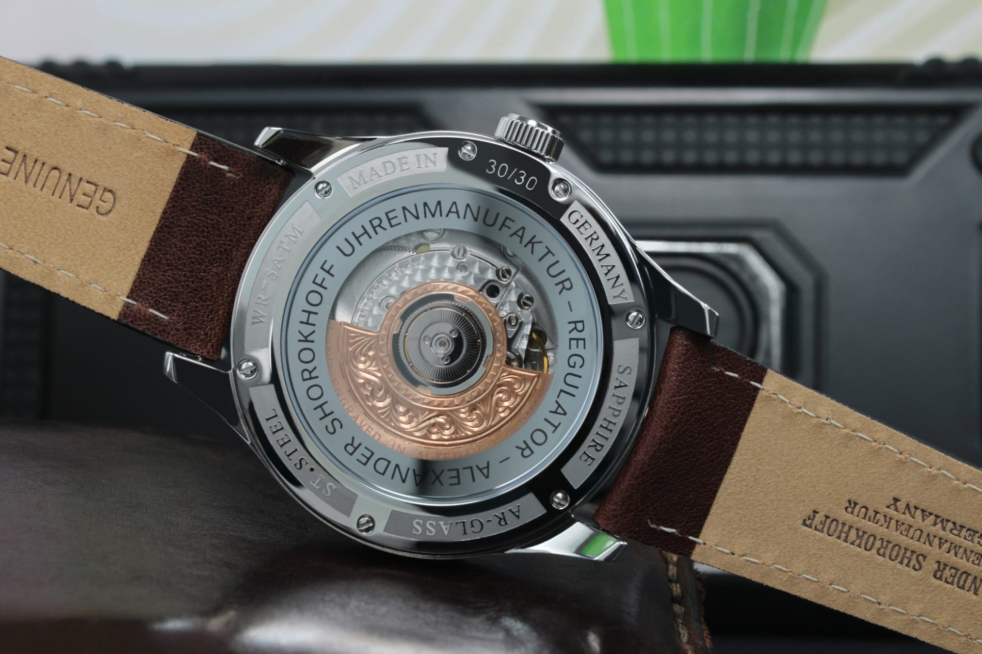 The new Regulator Automatic by Alexander Shorokhoff is not just a watch, but an expression of individuality and style. It is the perfect companion for those who appreciate both technology and avant-garde design, and seek a timepiece that reflects their personality and their demand for quality. Dive into the world of the automatic regulator and experience the fusion of technology and avant-garde aesthetics at its finest.