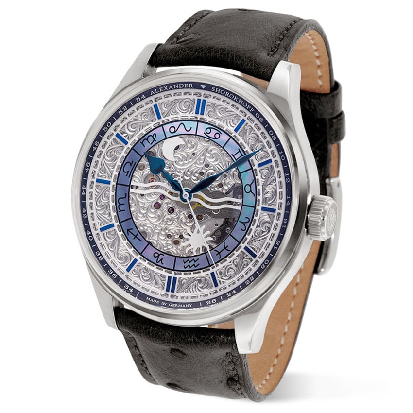 - This timepiece features a 46mm steel case paired with a high quality leather strap. It showcases a distinctive silver dial and is powered by a precise manual winding movement. The watch is designed with a water resistance of up to 50m.