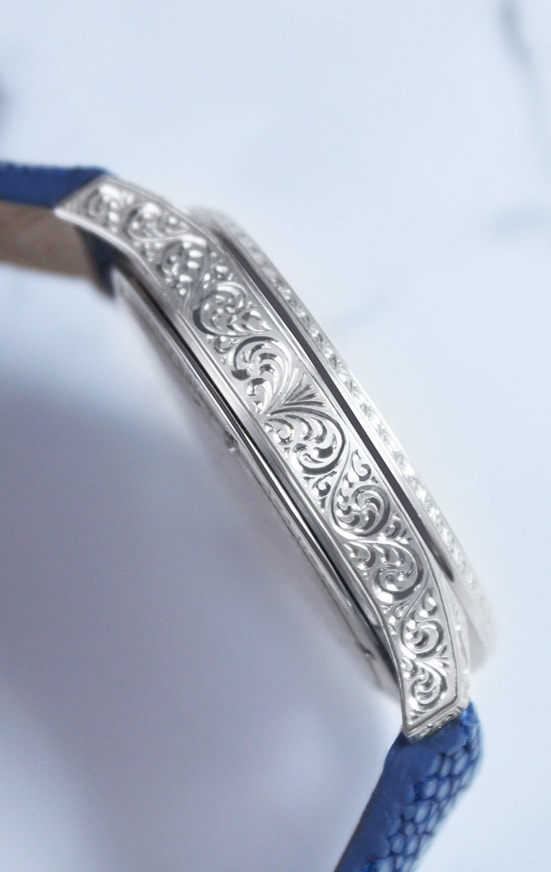 This remarkable model not only stands out with exclusive and intricate hand engravings on a genuine silver case but also serves as a tribute to the 50th anniversary of the Inhorgenta trade fair. Thanks to the diamond dust on the dial, applied in an innovative process to create a sparkling diamond snow cover, and the unconventional leaf design, this model presents an appearance that truly honors the anniversary in every aspect. The “Wintergenta” is not just an exquisite piece of jewelry; it is art!