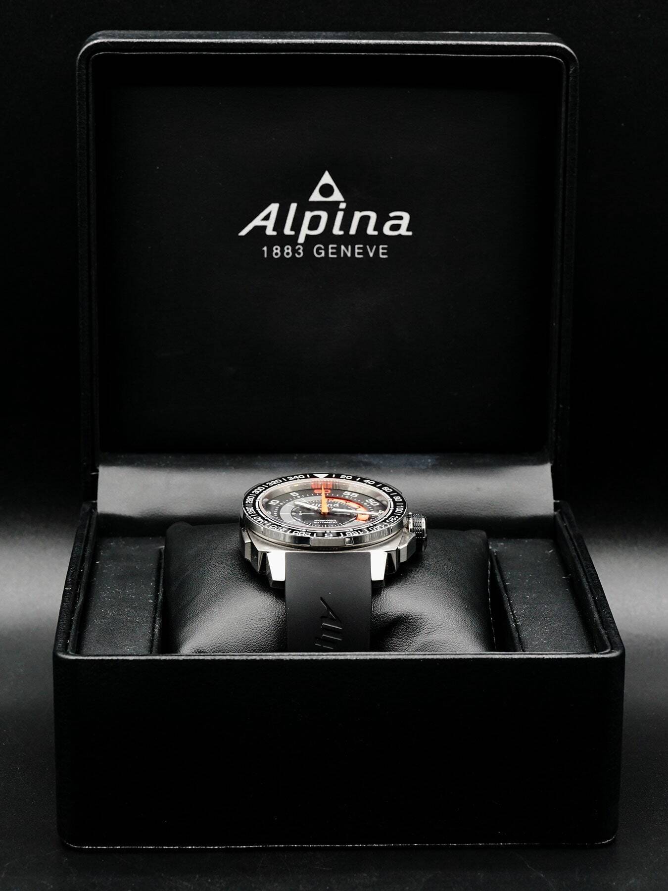 This Alpina Extreme Yacht Timer AL880X4V6 is in EXCELLENT condition. This watch includes its original box and warranty & instructions booklet. Extra black rubber strap.