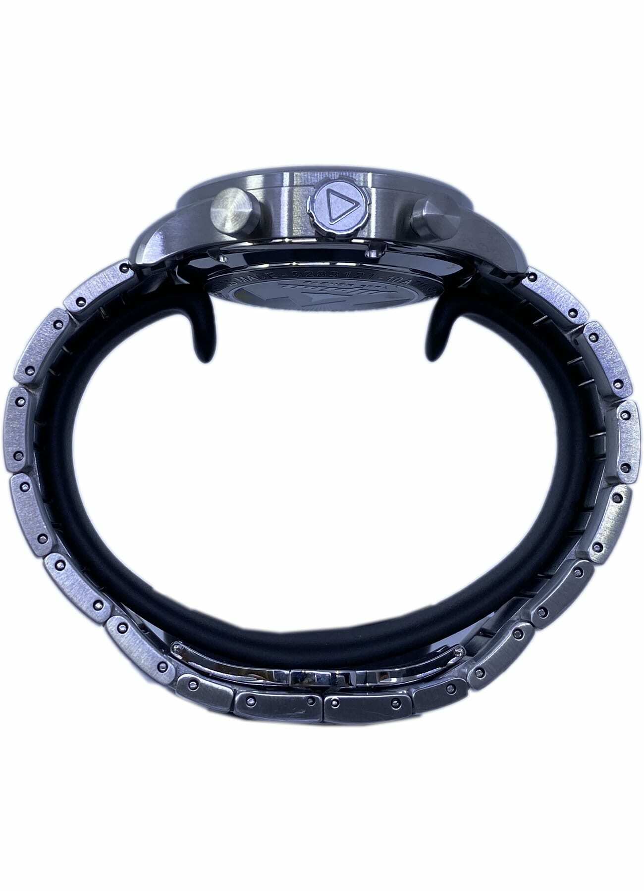 - This timepiece features a 42mm steel case paired with a high quality steel bracelet. It showcases a distinctive black dial and is powered by a precise quartz winding movement. The watch is designed with a water resistance of up to 100m.