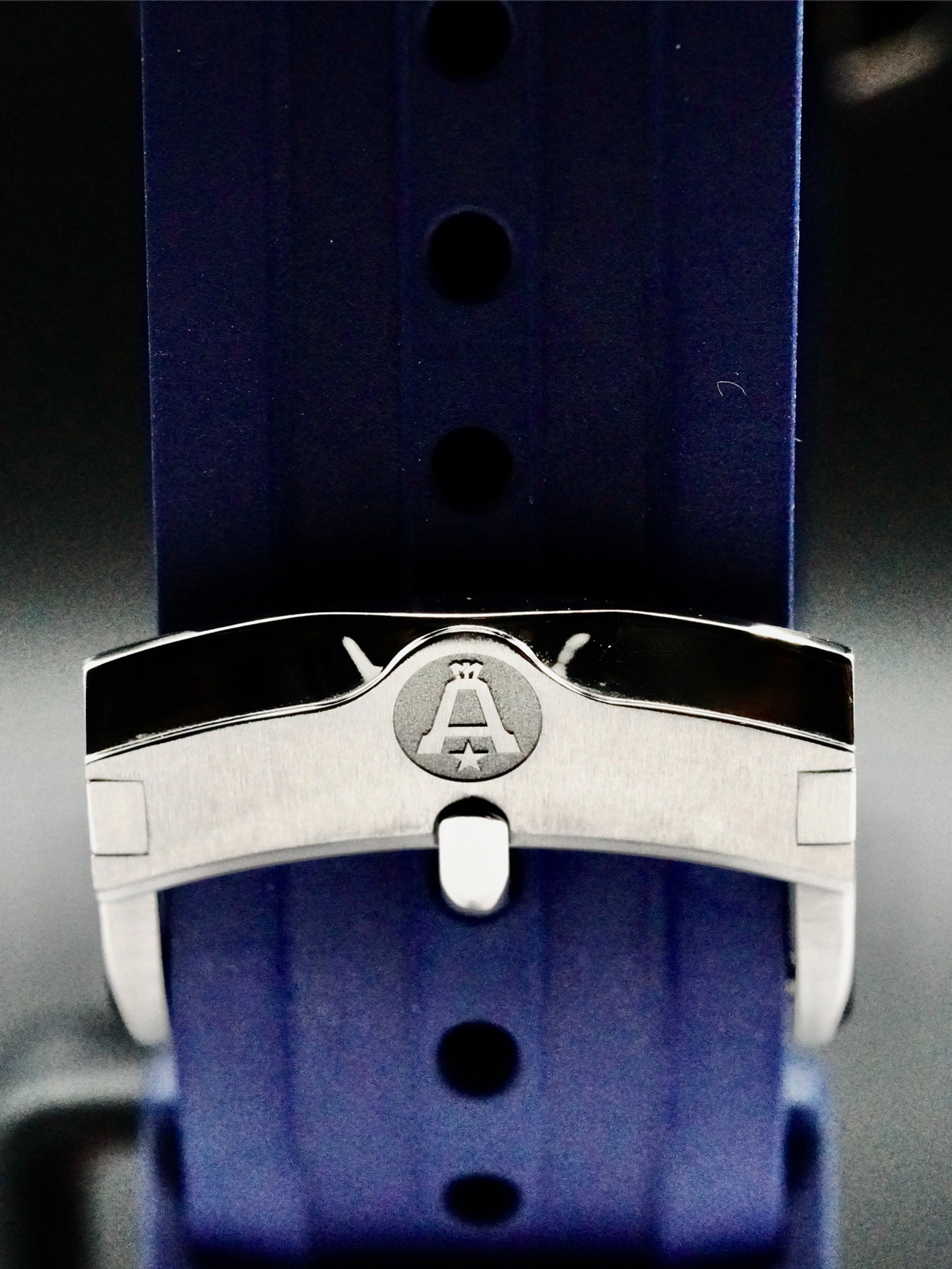 Manual Winding Movement powered by Angelus Calibre A-300 with a power reserve of approximately 60 hours. Water resistance up to 30 meters.