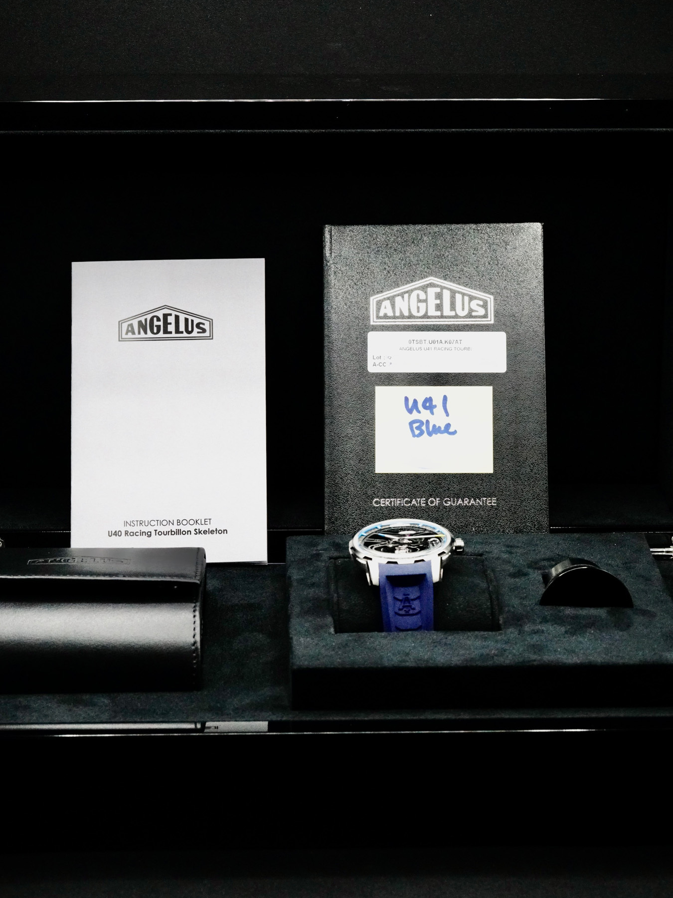 This Angelus U41 Blue 0TSBT.U01A.K07A Tourbillon Skeleton Limited Edition is in EXCELLENT condition. This watch includes its original box, original papers and Certificate of guarantee dated for January 2022.