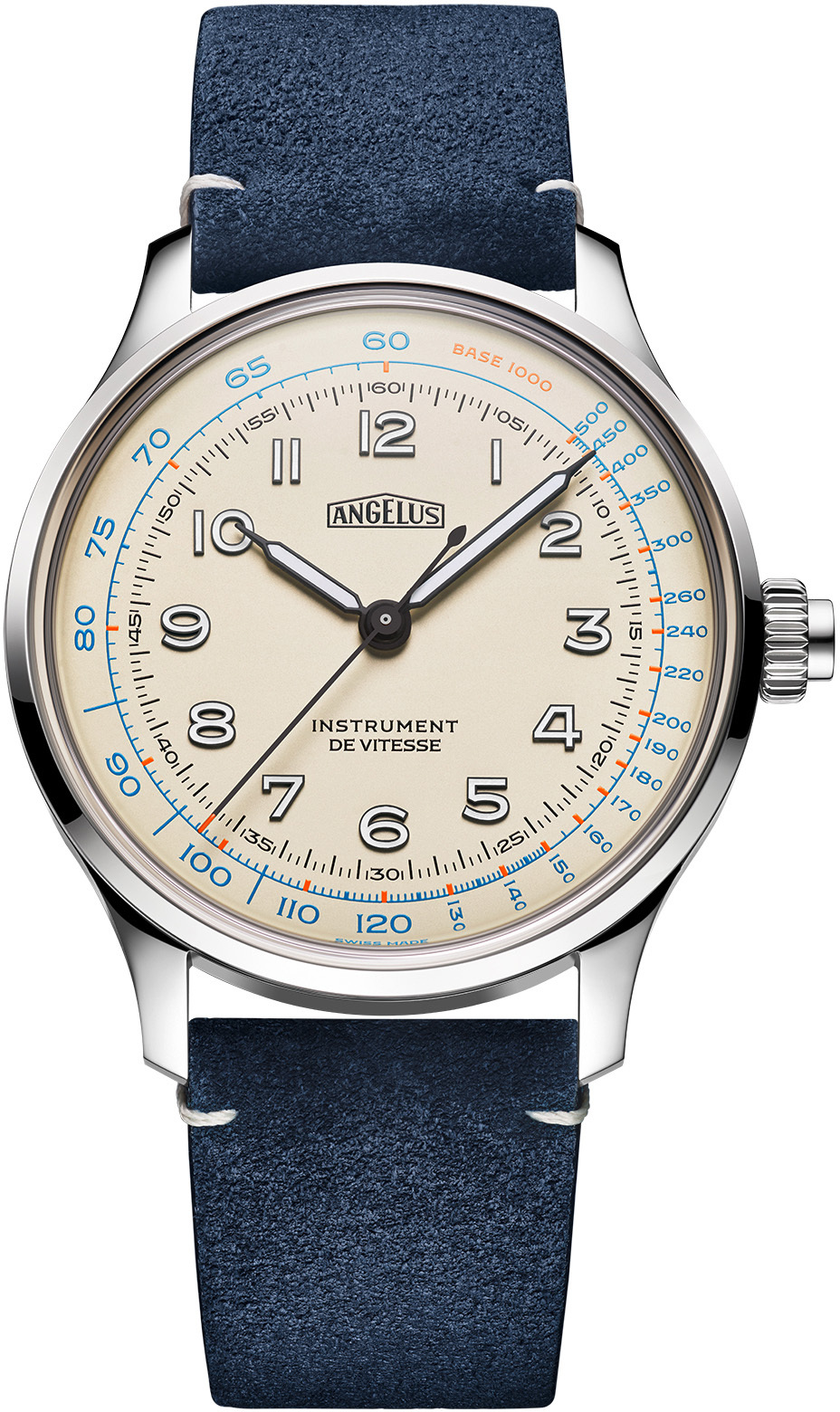 Dive into the golden age of racing with the Angelus Instrument de Vitesse, a masterpiece in the La Fabrique collection. This ivory-white dialed, mono-pusher chronograph is a homage to vintage GT car dashboards, offering a unique blend of elegance and functionality. With a sleek 39-mm stainless steel case, the watch boasts a manually wound Manufacture calibre for impeccable precision. Its dial, adorned with black-outlined Arabic numerals and luminescent-coated hour and minute hands, ensures visibility in any condition. Limited to 25 pieces, this watch is a collector's dream, embodying watchmaking history and culture. Experience a new level of sophistication and performance with this exquisite timepiece, designed for those who appreciate the beauty of classic chronographs and the thrill of speed.