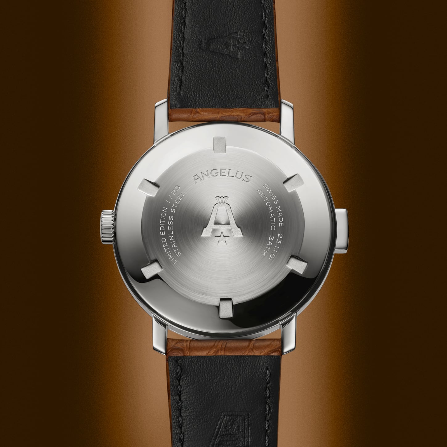 A faithful tribute to the original model, the Tinkler 1958 repeater celebrates Angelus’s rich heritage of striking watches. Driven by a self-winding quarter-repeater movement, this double limited edition, available in gold or steel, continues the tradition of measuring instruments that built the manufacture’s reputation.