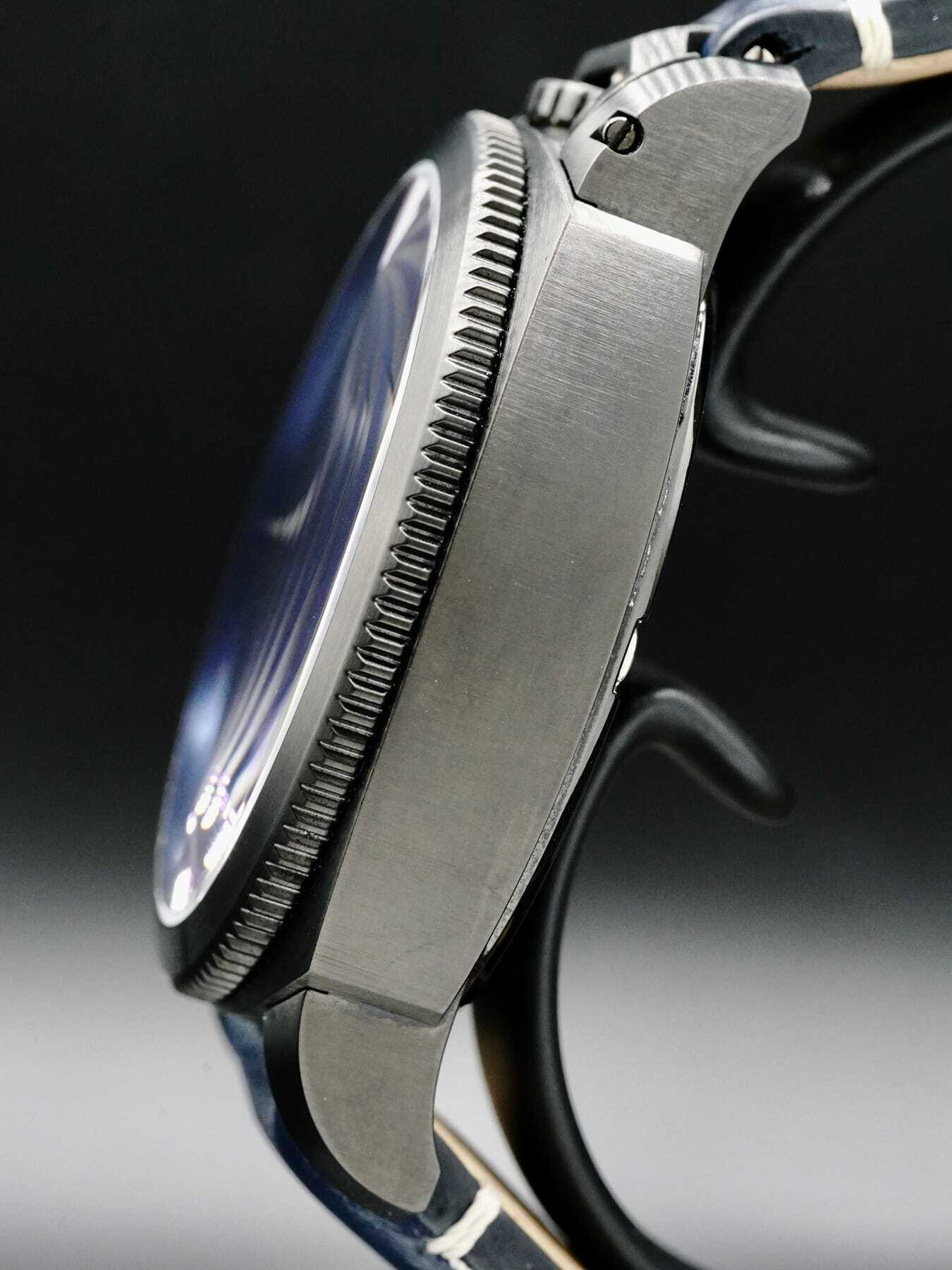 This Anonimo Militare Automatic Steel DLC Blue Dial is in EXCELLENT condition. It has box and papers.