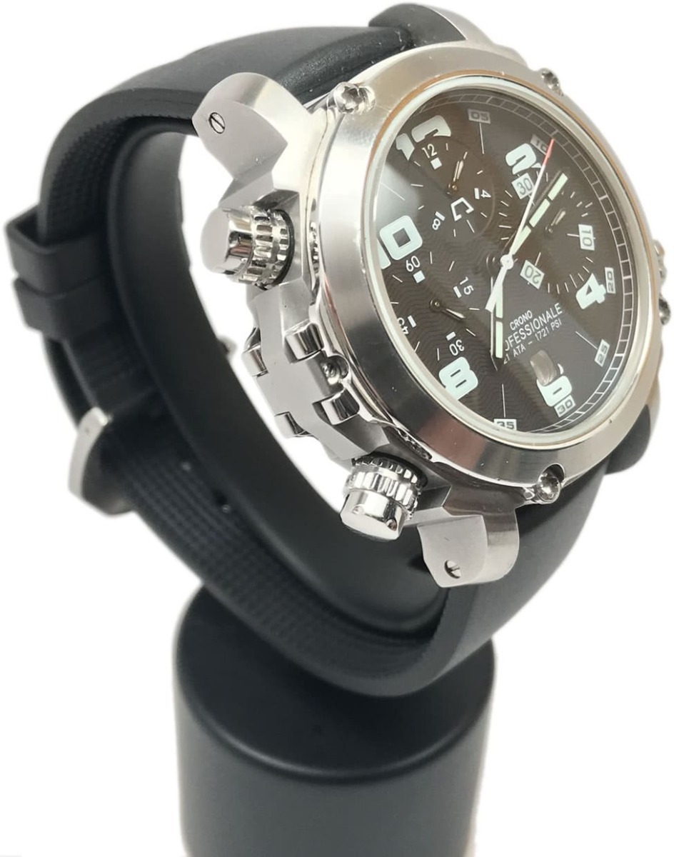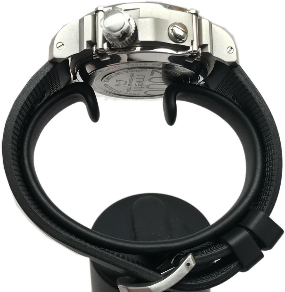 - This timepiece features a 43mm steel case paired with a high quality rubber strap. It showcases a distinctive black dial and is powered by a precise automatic winding movement. The watch is designed with a water resistance of up to 1200M.