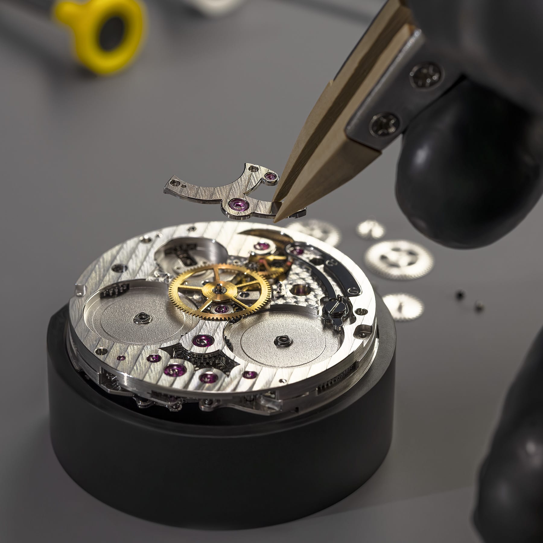 The movement’s finishing is crafted in the classic tradition of Haute Horlogerie and features polished bevels with meticulously executed internal corners – one of the most complex and labour-intensive techniques. The design includes 73 internal corners: 13 on the bridges and 60 on the wheels, highlighting the exceptional standard of the movement’s finishing.