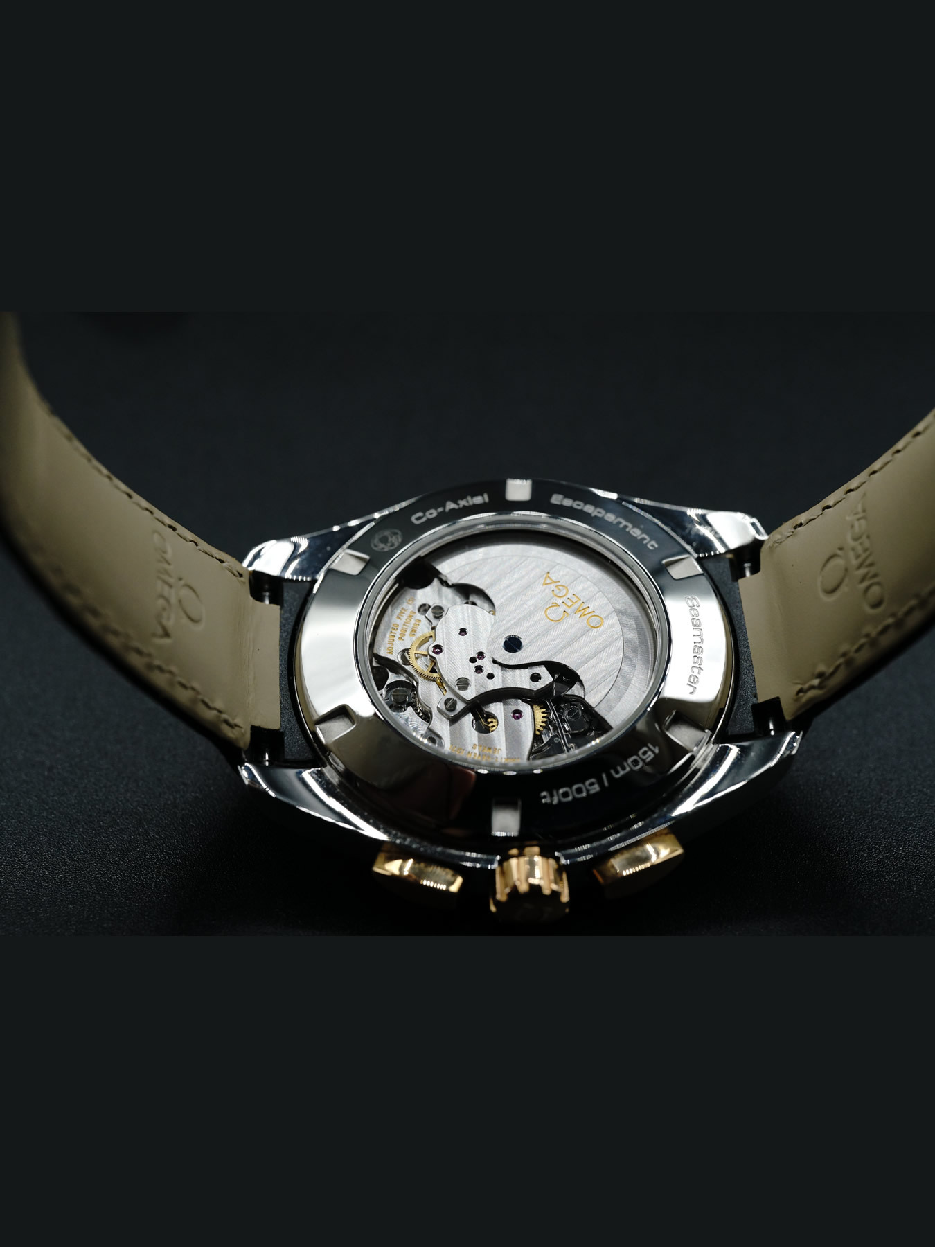 Caliber Omega 3313 Self-winding chronograph movement with column wheel mechanism and Co-Axial Escapement for greater precision