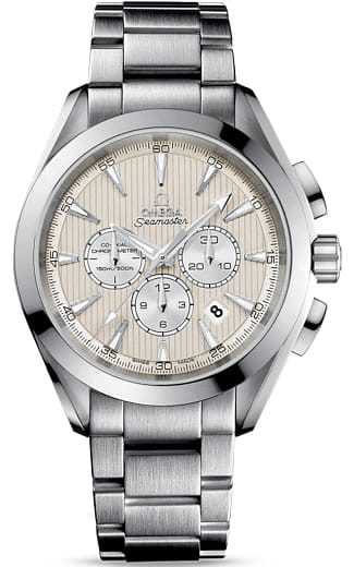 This classic yet robust timepiece represents a tribute to OMEGA's rich maritime heritage. The dramatic and easily-recognisable dial design of the OMEGA Seamaster Aqua Terra 150M collection recalls the wooden decks of luxury sailboats. This model features an ivory dial decorated with the Teak Concept pattern and a date window. Thirty-minute and 12-hour recorders, and a small seconds dial can be found at the 3, 6 and 9 o'clock positions, respectively. A scratch-resistant sapphire crystal protects this unique dial. The bezel is mounted on a 44 mm stainless steel case on a stainless steel bracelet. This certified chronometer is powered by the OMEGA Co-Axial calibre 3313 which can be seen through the transparent caseback.
