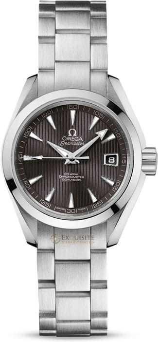 - This timepiece features a 30mm steel case paired with a high quality steel bracelet. It showcases a distinctive grey dial and is powered by a precise automatic winding movement. The watch is designed with a water resistance of up to 150m.