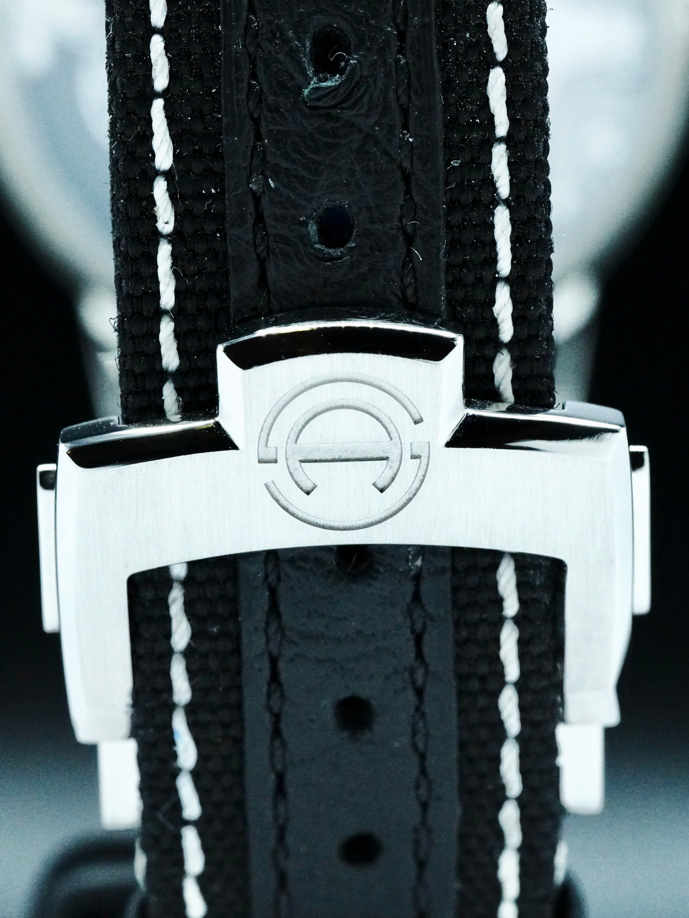This Armin Strom Gravity Equal Force Ultimate Sapphire features a 41mm stainless steel case with an exhibition case back on a black fabric strap. This watch also sports a skeleton dial with luminous hands and Arabic numeral dial markers covered by scratch resistant sapphire crystal.