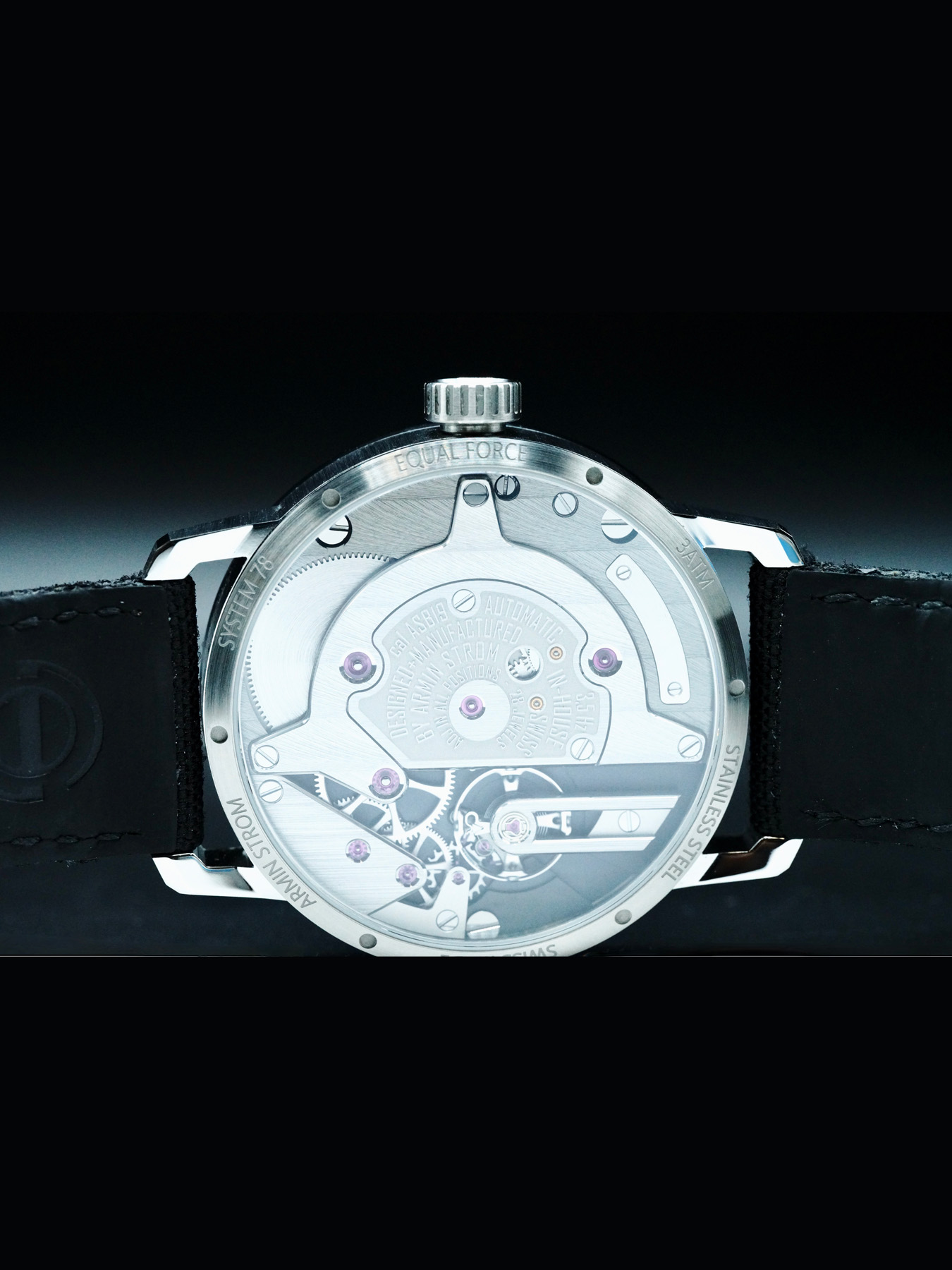 Automatic movement powered by Armin Strom Calibre ASB19 with a power reserve of approximately 72 hours. Water resistance up to 30 meters.