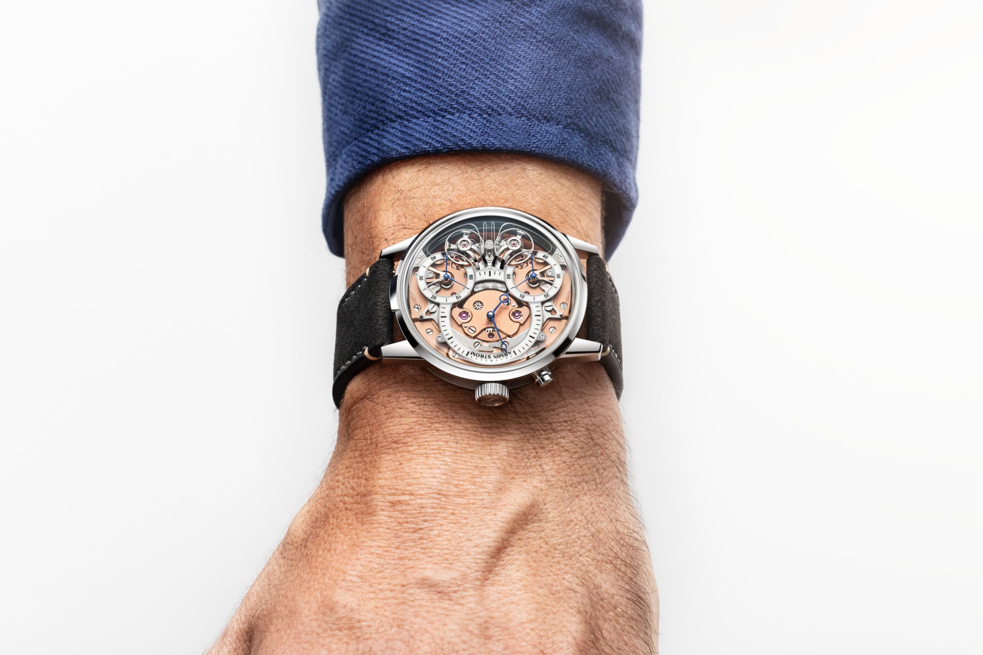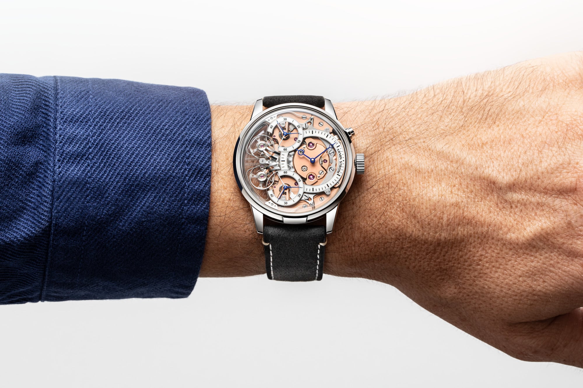 ARMIN STROM’s breakthrough achievement, stable and resilient Resonance, had been pursued since the 17th century by watchmaking pioneers like Christiaan Huygens because of its potential to deliver chronometric consistency — the gain or loss of precisely the same number of seconds each day, without fluctuation. Marine navigators of Huygens’s era were desperate for chronometric consistency so they could more accurately calculate longitude at sea. Despite the efforts of some of history’s most iconic watchmakers, chronometric consistency wasn’t achieved when it was needed most — because the Resonance Fragility Problem rendered Resonance timepieces unsuitable for the rigours of oceanic travel. Resonance simply couldn’t be maintained in dynamic, real-world conditions — until 2016. That’s when Armin Strom’s Claude Greisler, inspired by the suspension system found in Antide Janvier’s 18th-century Resonance Clock, introduced the first wristwatch to achieve Resonance with near-absolute resilience against disruption. Certified by the Centre Suisse d’Electronique et de Microtechnique (CSEM), ARMIN STROM’s patented solution actively mitigates torque fluctuations to maintain synchronization in the most challenging environments, including the human wrist.