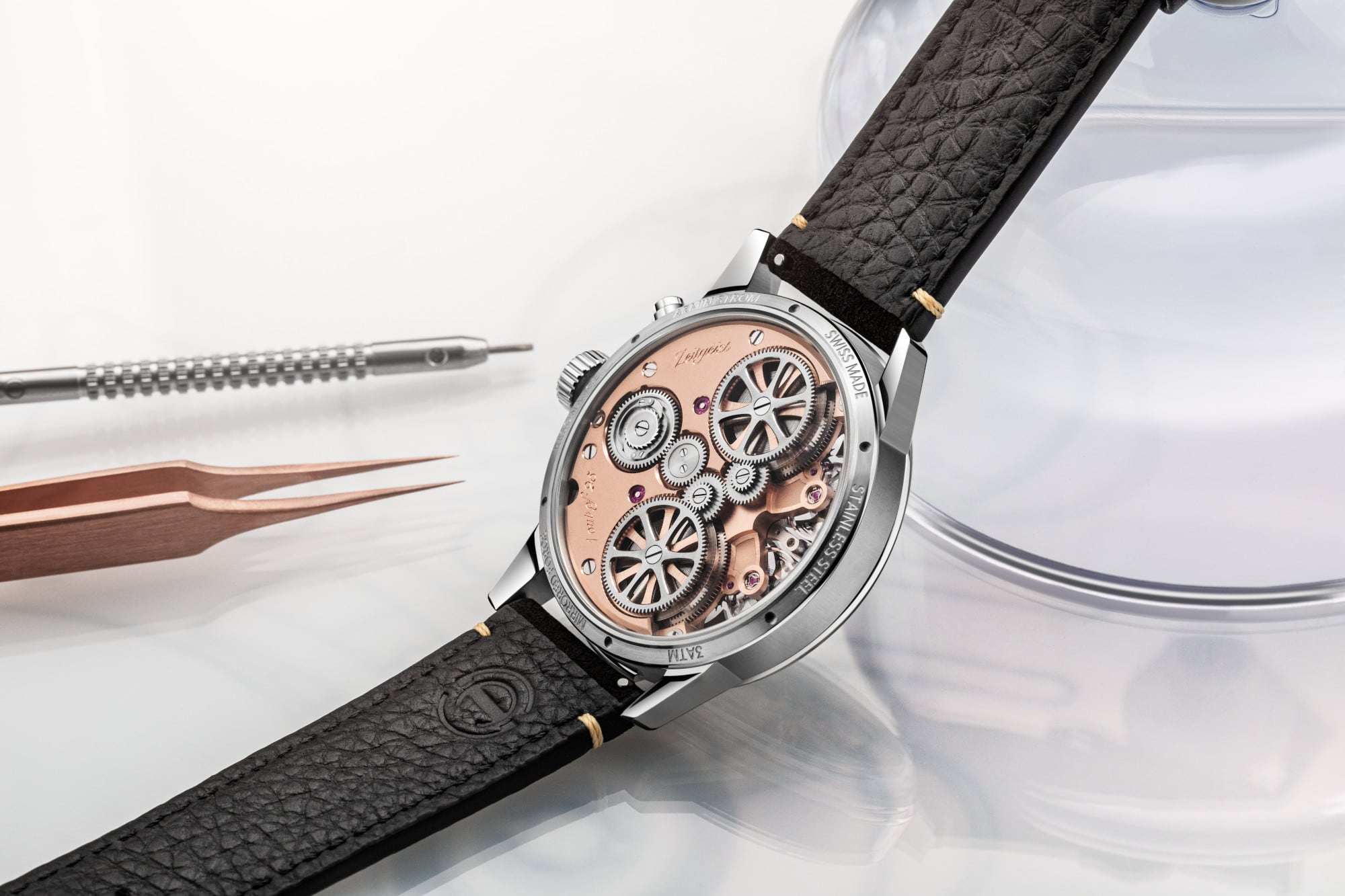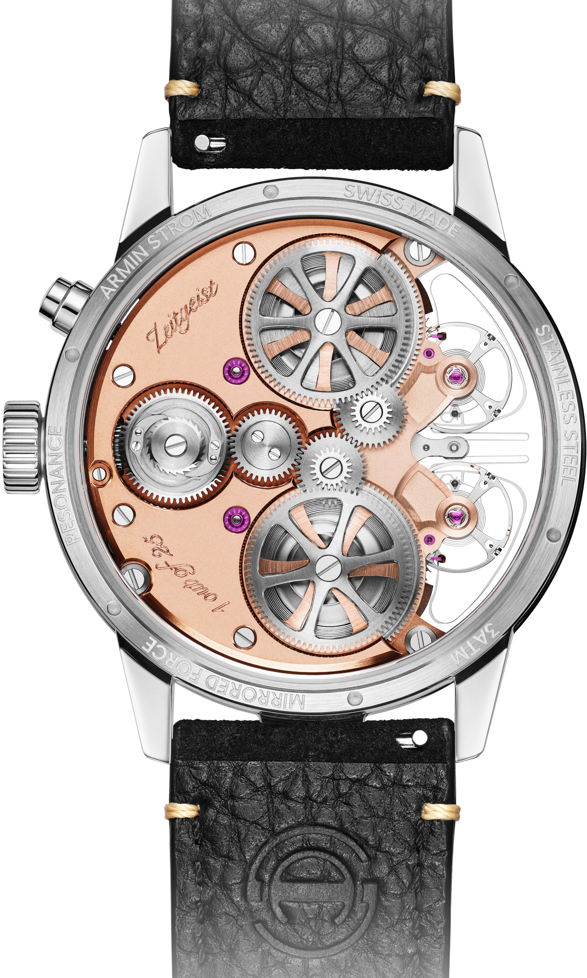 The Zeitgeist incorporates the Armin Strom Manufacture’s milestone achievement of stable and resilient Resonance in a slim and refined 43mm case; combining technical depth with optimal everyday wearability. It definitively achieves the longstanding horological ambitions for Resonance Synchronization that originated with Christiaan Huygens’s clock experiments in 1665.