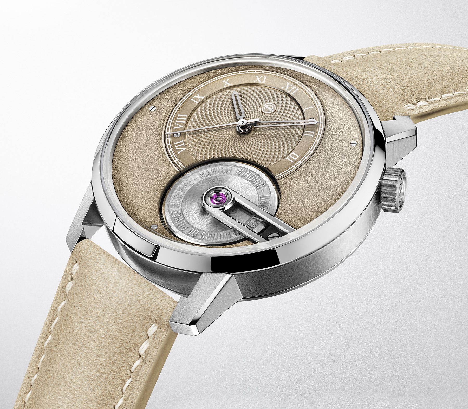 - This timepiece features a 38mm steel case paired with a high quality . It showcases a distinctive sand dial and is powered by a precise manual winding movement. The watch is designed with a water resistance of up to 50m.