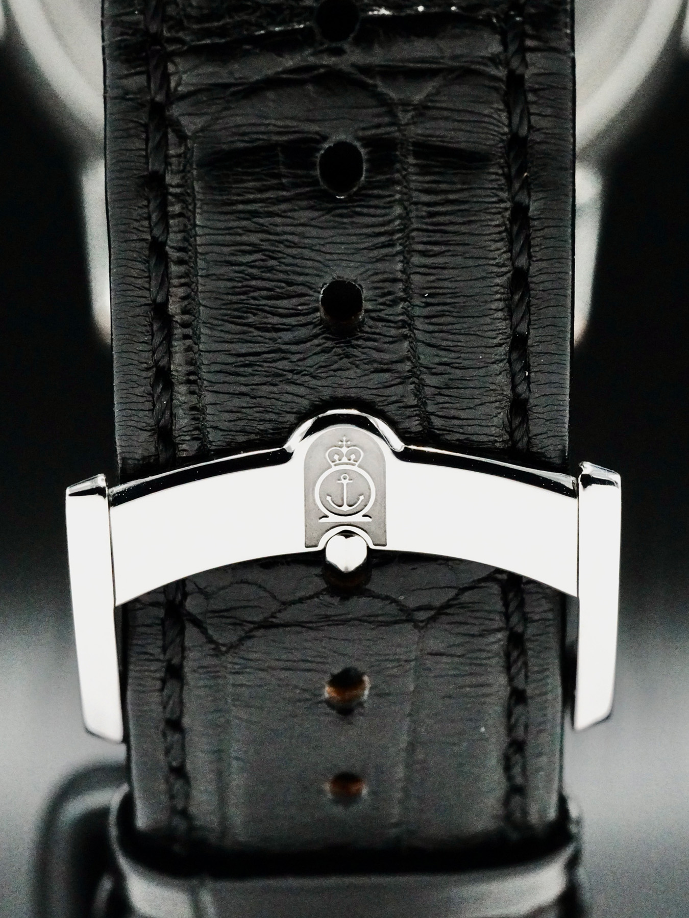 Mechanical Hand-wound movement powered by Arnold & Son Calibre A&S8615 with a power reserve of approximately 90 hours. Water resistance up to 30 meters.