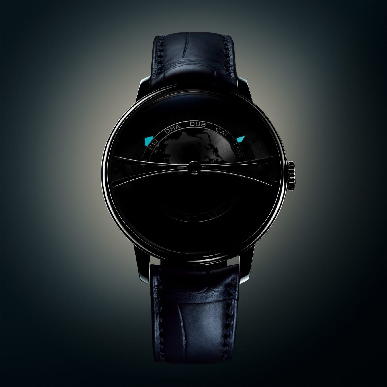 This ultra-graphic dial has also undergone subtle changes that have made it visually more striking and technically even more effective for international travel. The structure retains its famous, delicately curved arched bridge – crafted from steel and worked by hand –which can be considered the signature feature of the collection. The bridge demarcates the hours of the day and night on the 24-hour bezel ring and, with the ruby set in its centre, holds in place the dome representing the northern hemisphere as seen from the North Pole. On the dome, the metallic continents, which have been sunray-brushed to accentuate their relief, stand out clearly and strikingly against the oceans depicted in blue or green depending on the model.