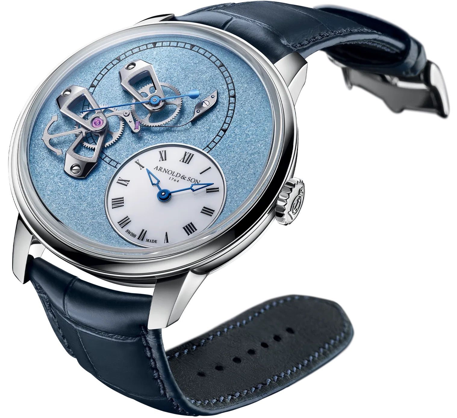 The true-beat seconds function is characteristic of the instruments that John Arnold supplied to the Royal Navy. Their escapement used to beat at one oscillation per second, naturally indicated by a sweep-seconds hand. This explicit function inspired Arnold & Son to create one of its most iconic complications: ‘True Beat’, also known as deadbeat seconds. The distinctive feature of the DSTB collection is that it displays this mechanism in full on the dial, hence the ‘Dial-Side True Beat’ name, delivering watchmaking, design and spectacle all in one.