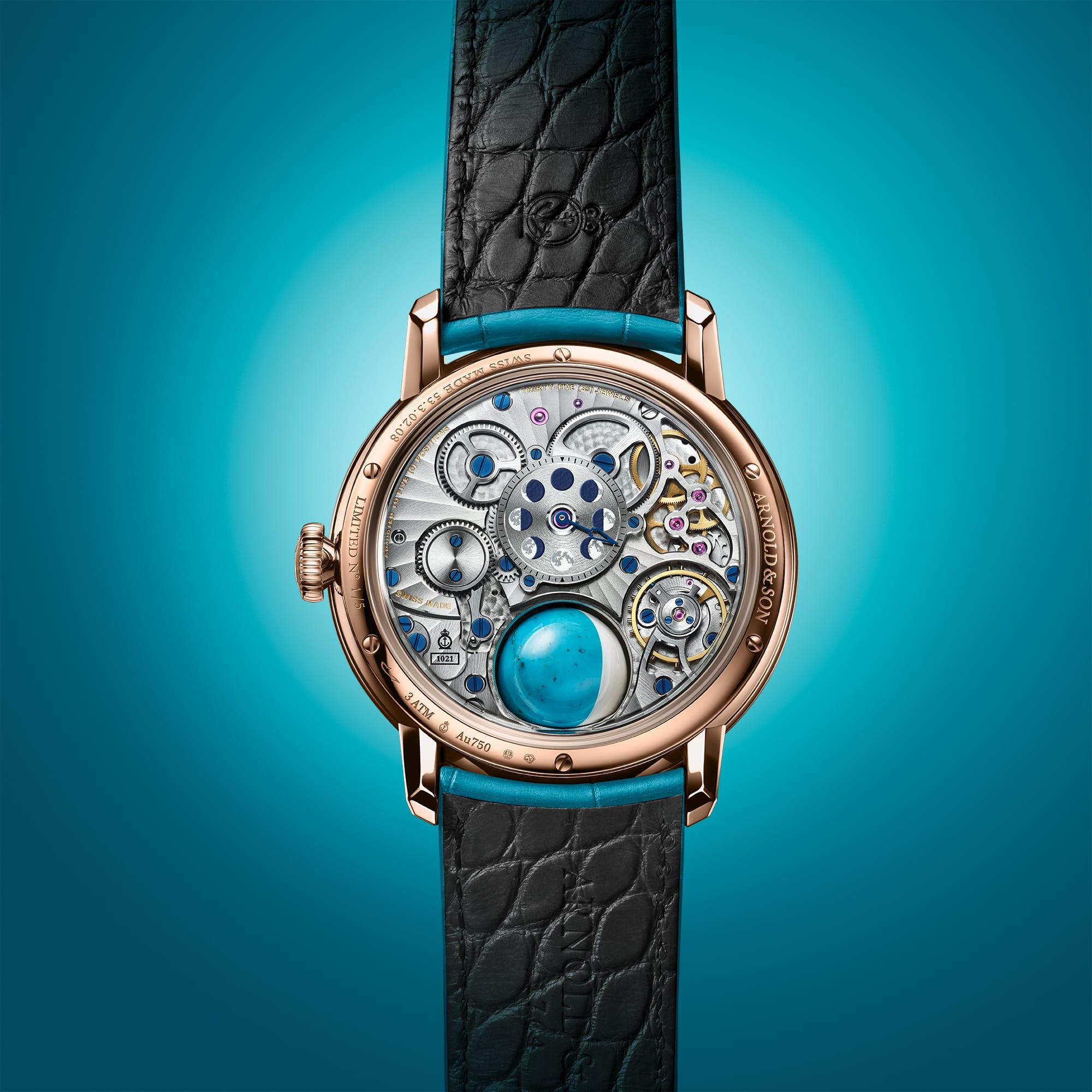 Created exclusively for Exquisite Timepieces, this edition draws on turquoise's rich cultural and spiritual legacy. Venerated by ancient civilisations for its protective and healing properties, turquoise has long symbolised a bridge between the celestial and terrestrial worlds. Through this limited release, Arnold & Son and Exquisite Timepieces pay tribute to both the stone’s heritage and the artistry of haute horlogerie.