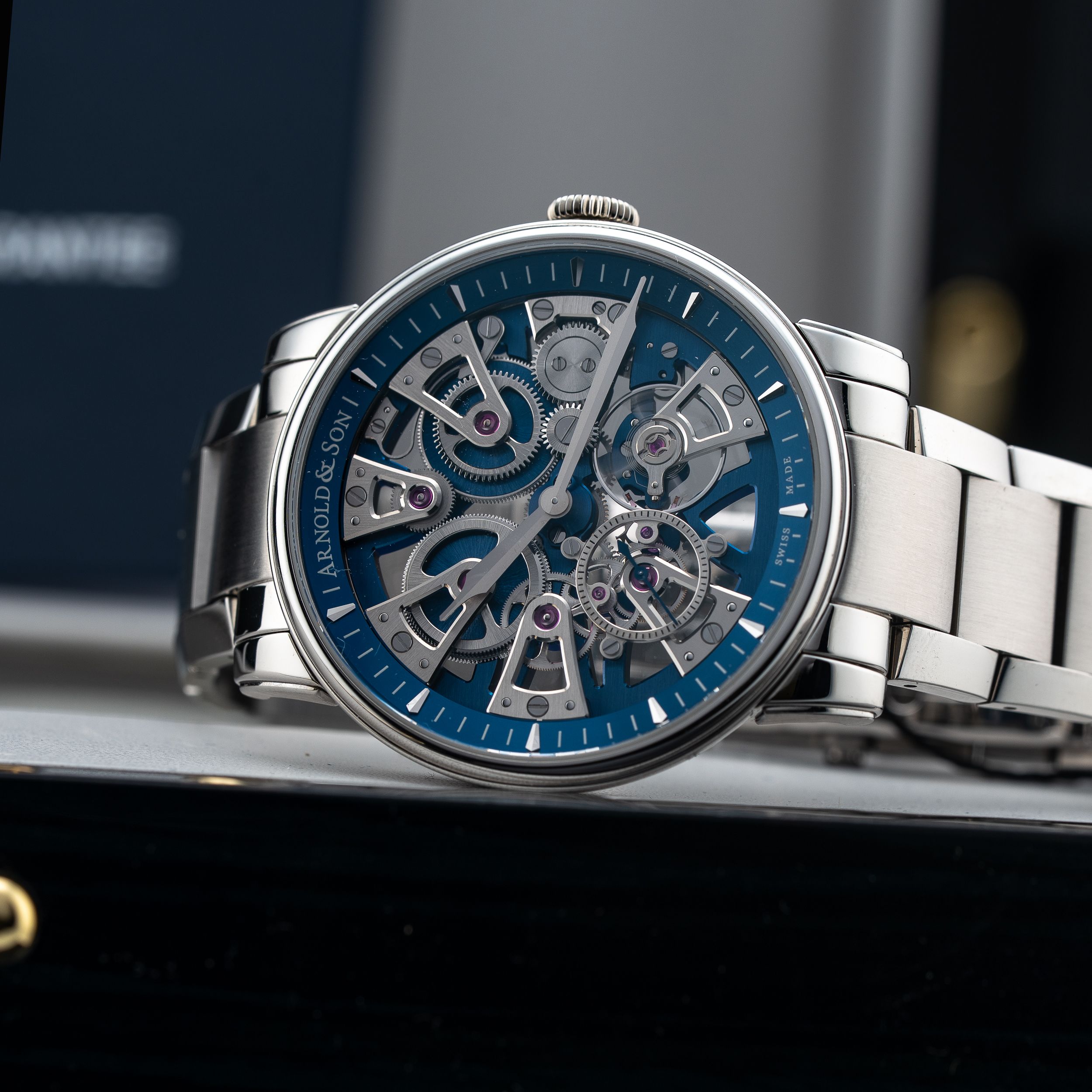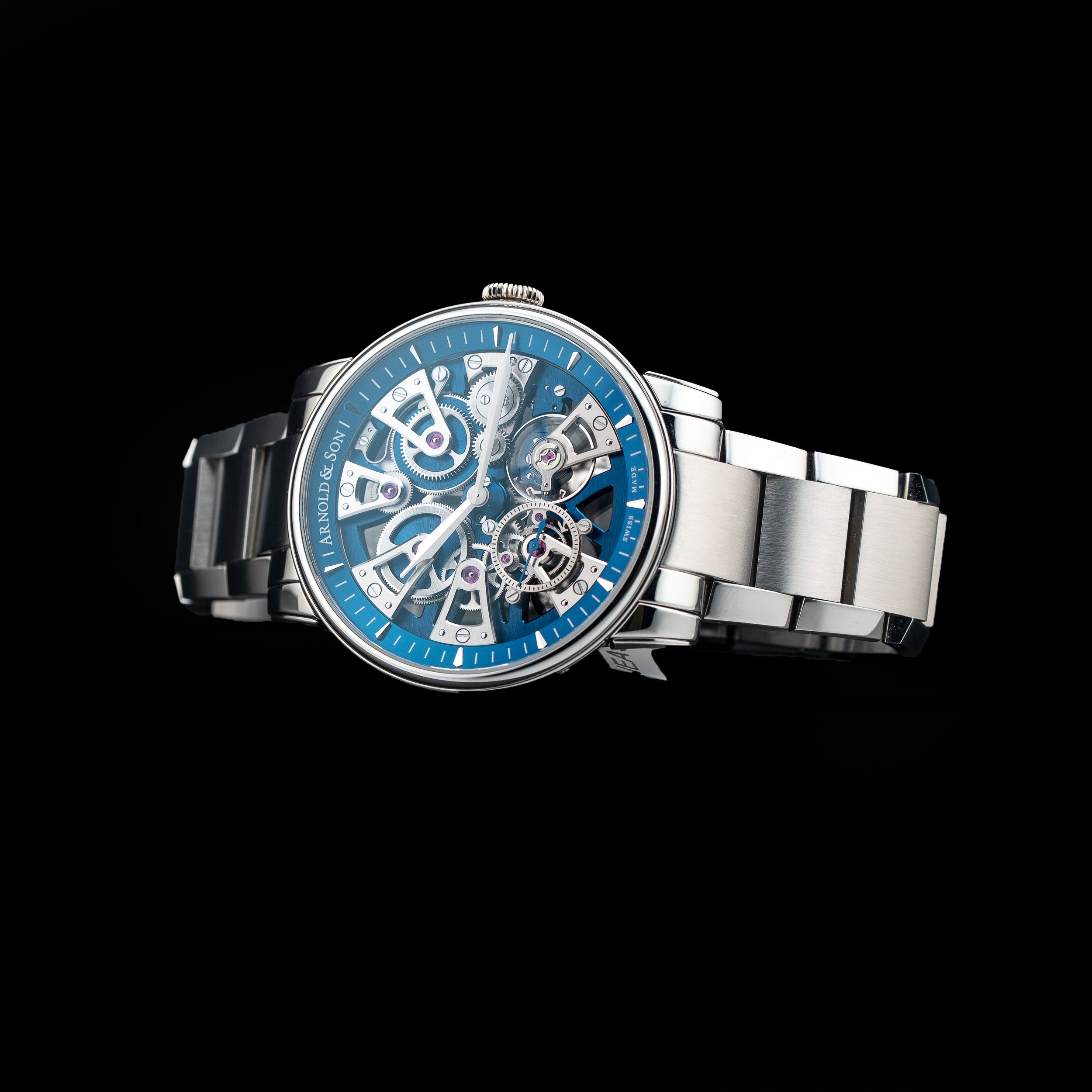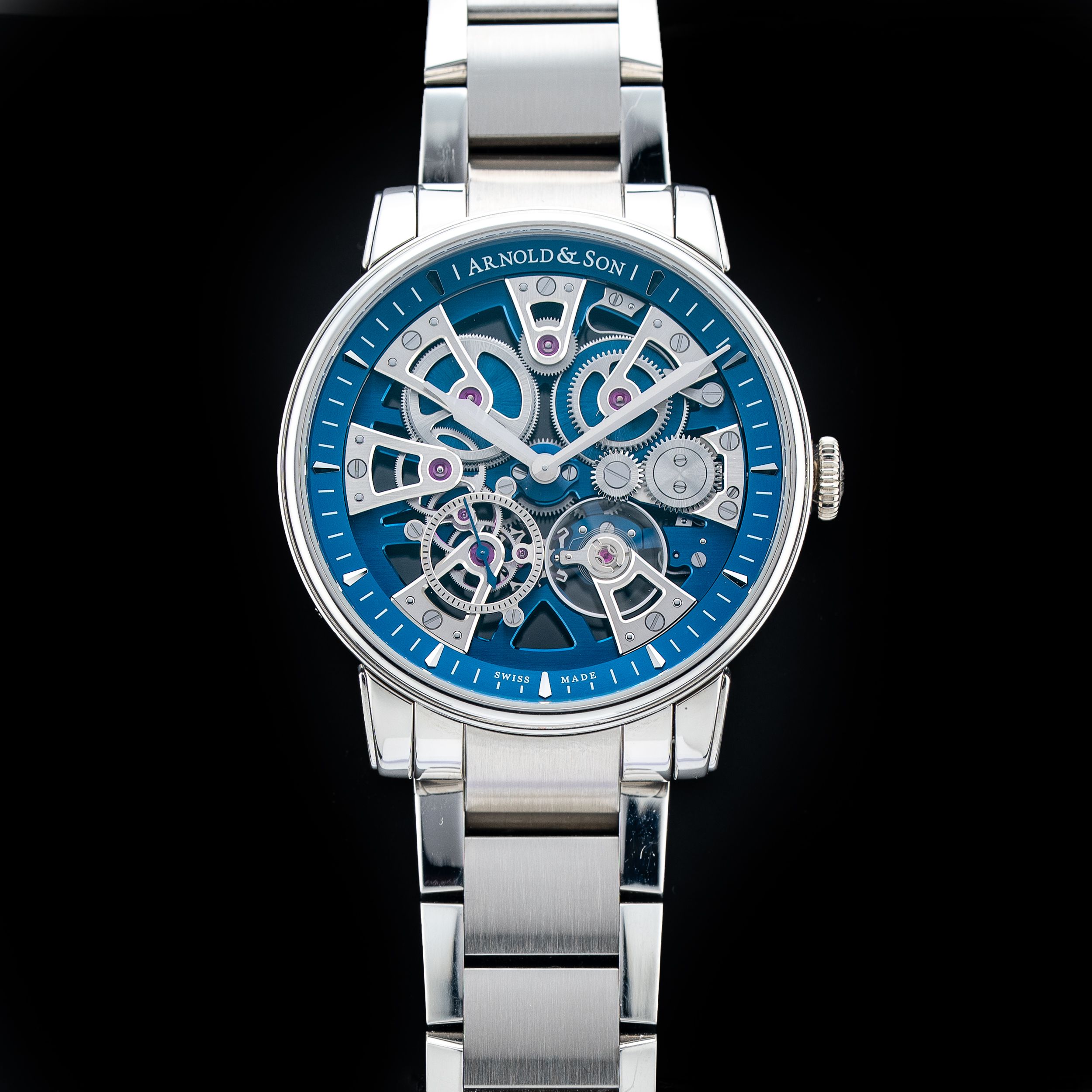 This Arnold & Son Nebula 41.5mm on Bracelet 1NEAS.U02A.S134D is in GREAT condition. This watch includes its Original Box (box is missing inner insert), Original Papers, warranty card dated 7/14/25. This watch has been fully authenticated and certified by Exquisite Timepieces. Please note, the photos shown are of the actual watch you will receive.