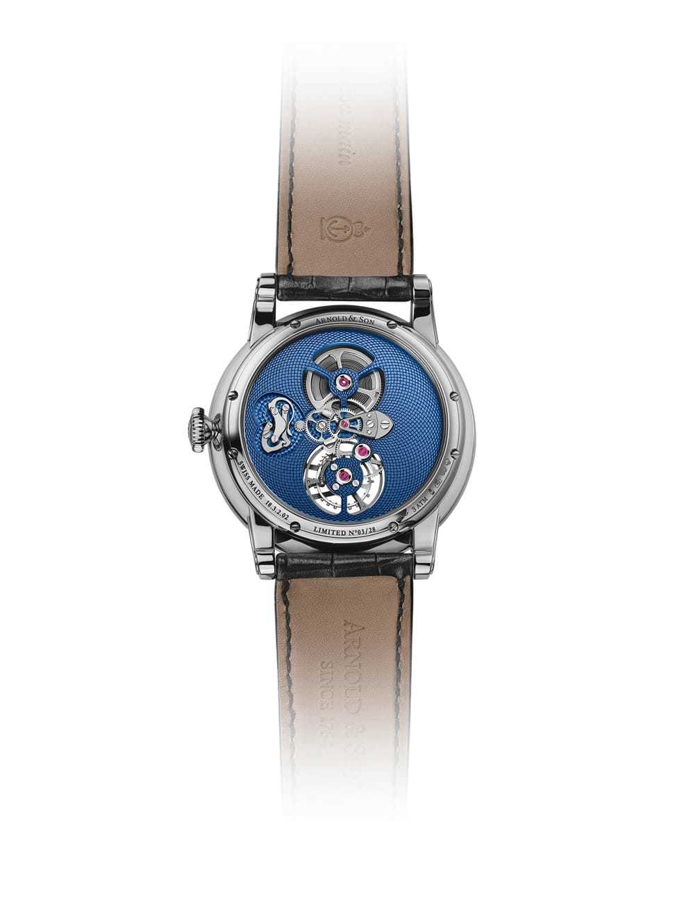 True to English watchmaking heritage, Arnold & Son unveils the TES Blue Tourbillon, with the hand-finished A&S8100 calibre with sapphire barrel bridge and blue main plate. This defining timepiece is part of the Royal Collection which combines classic styling with leading-edge technology.