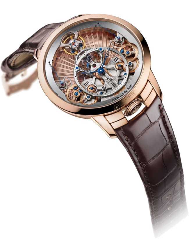 Arnold & Son unveils a new reference of its iconic Time Pyramid featuring the hand-chamfered A&S1615 calibre, housed in a 18-carat red gold case with a new case back beautifully decorated with a guilloche pattern on both sides. The A&S1615 movement with unique skeletonised pyramid-shaped architecture, was conceived, designed and developed in-house. The movement A&S1615 is a masterful rendition of technical prowess and unparalleled elegance. This superbly engineered wristwatch is part of the brand's Instrument Collection that combines instrument precision with classical styling.