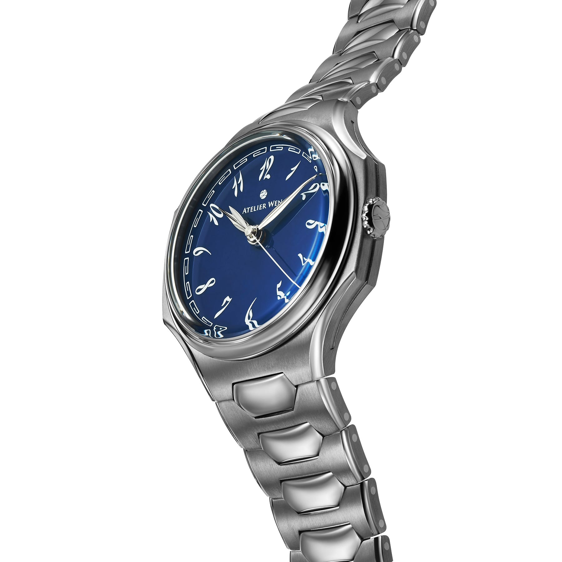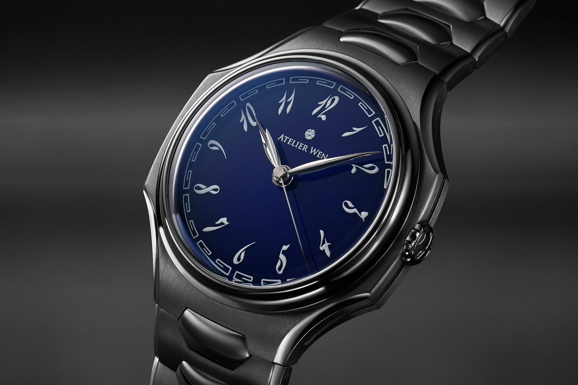 Atelier Wen is proud to present Inflection, the first permanent collection of integrated bracelet watches in 99.9% pure tantalum. Available in 3 variants featuring grand feu enamel dials, a launch edition in a viridian fumé on a hand-hammered dial, 幽 (Yōu), and two permanent editions, 墨 (Mò) in obsidian black dial and 渊 (Yuān) in midnight blue dial.