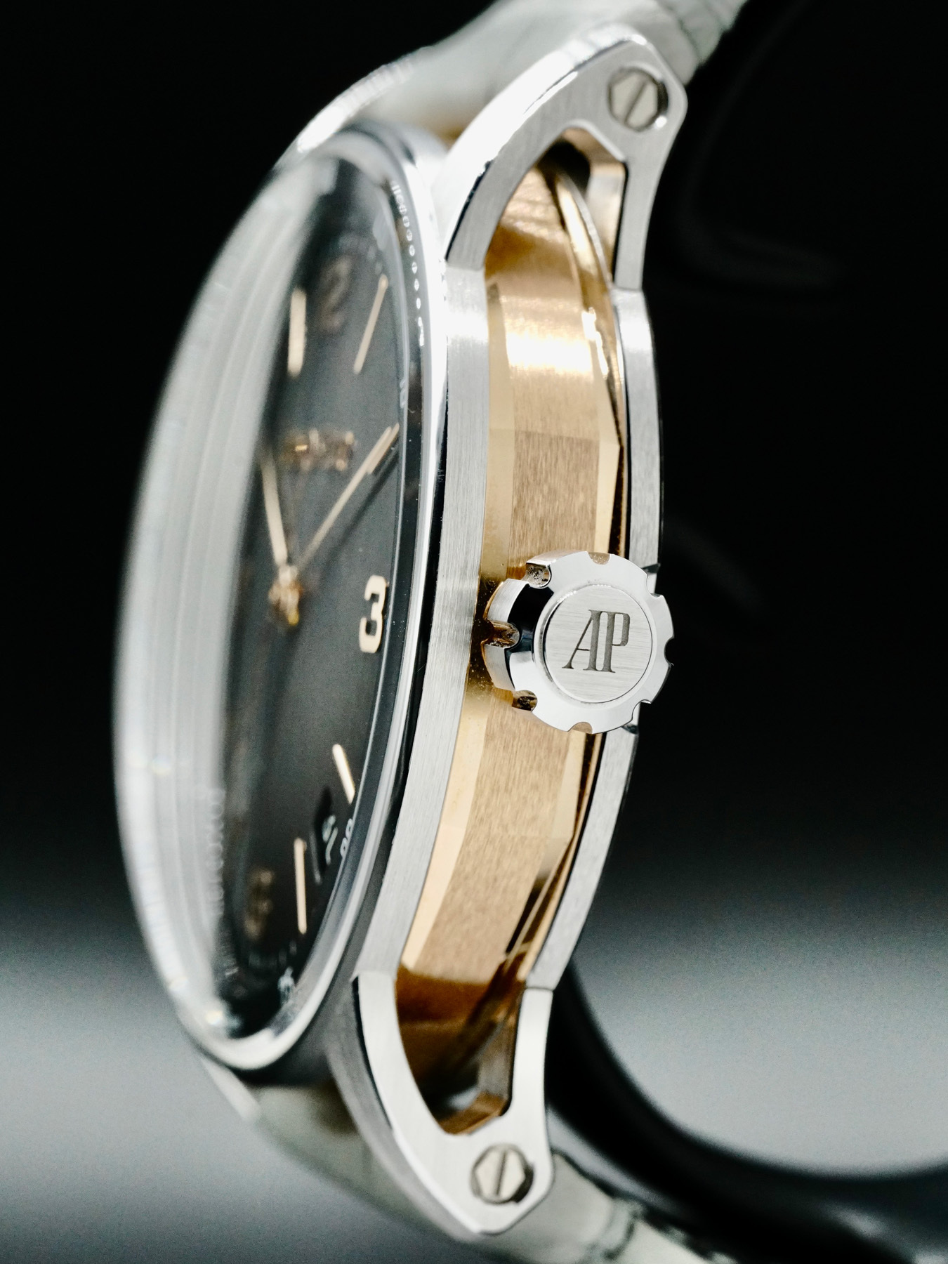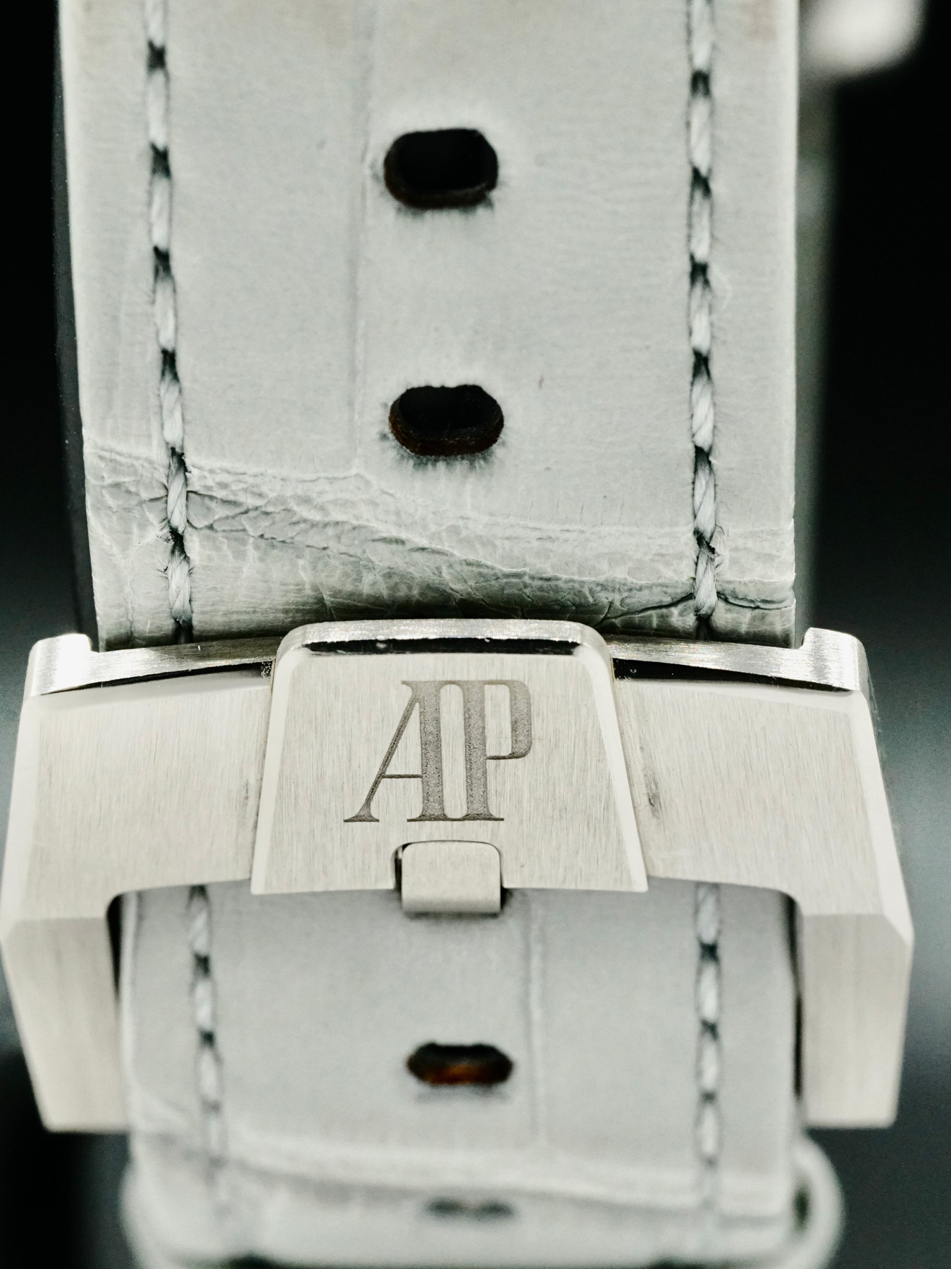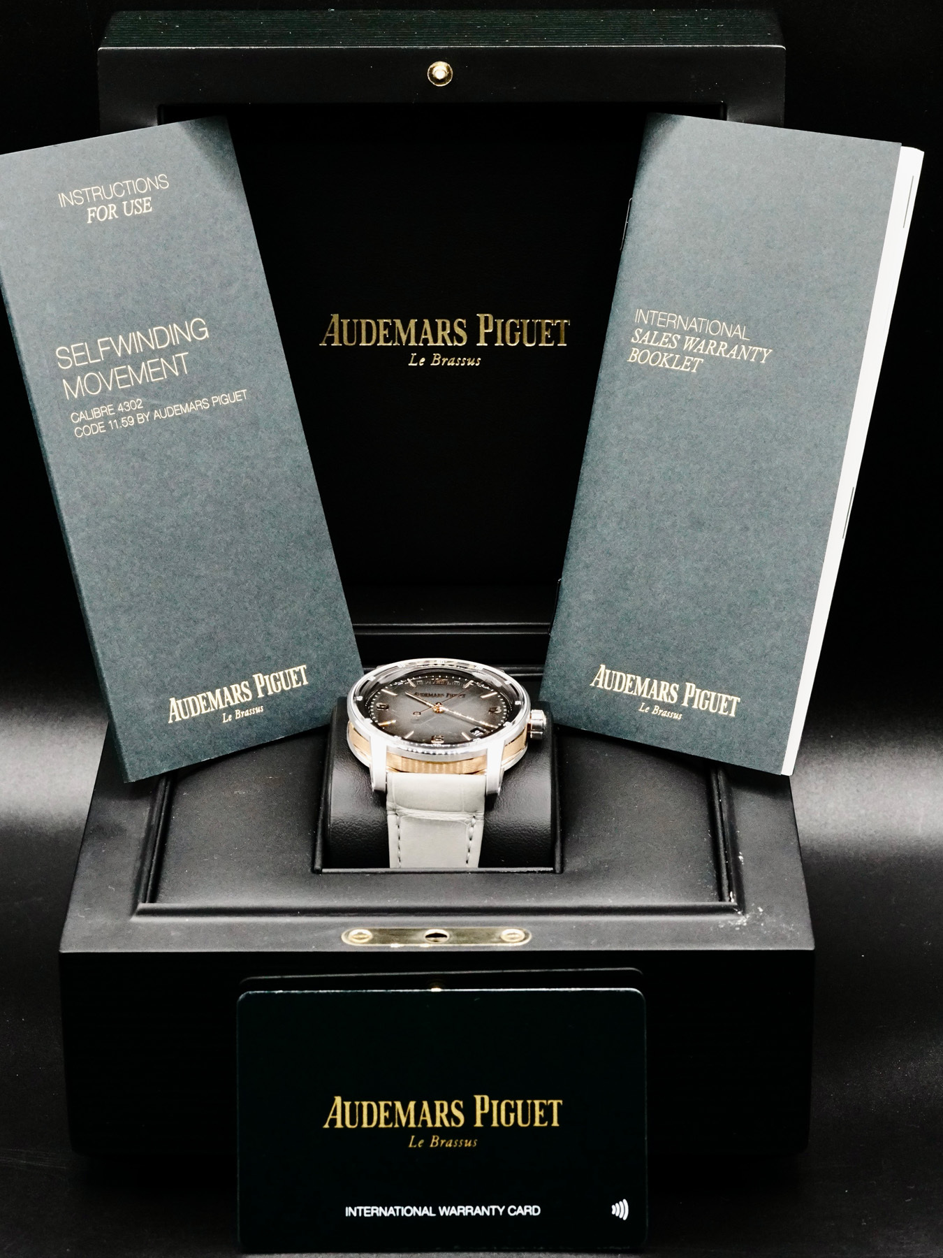 This Audemars Piguet 15210CR.OO.A002KB.01 Code 11.59 is in EXCELLENT condition. This watch includes its original box, instruction manual, international sales warranty booklet, and international warranty card. No date on warranty card
