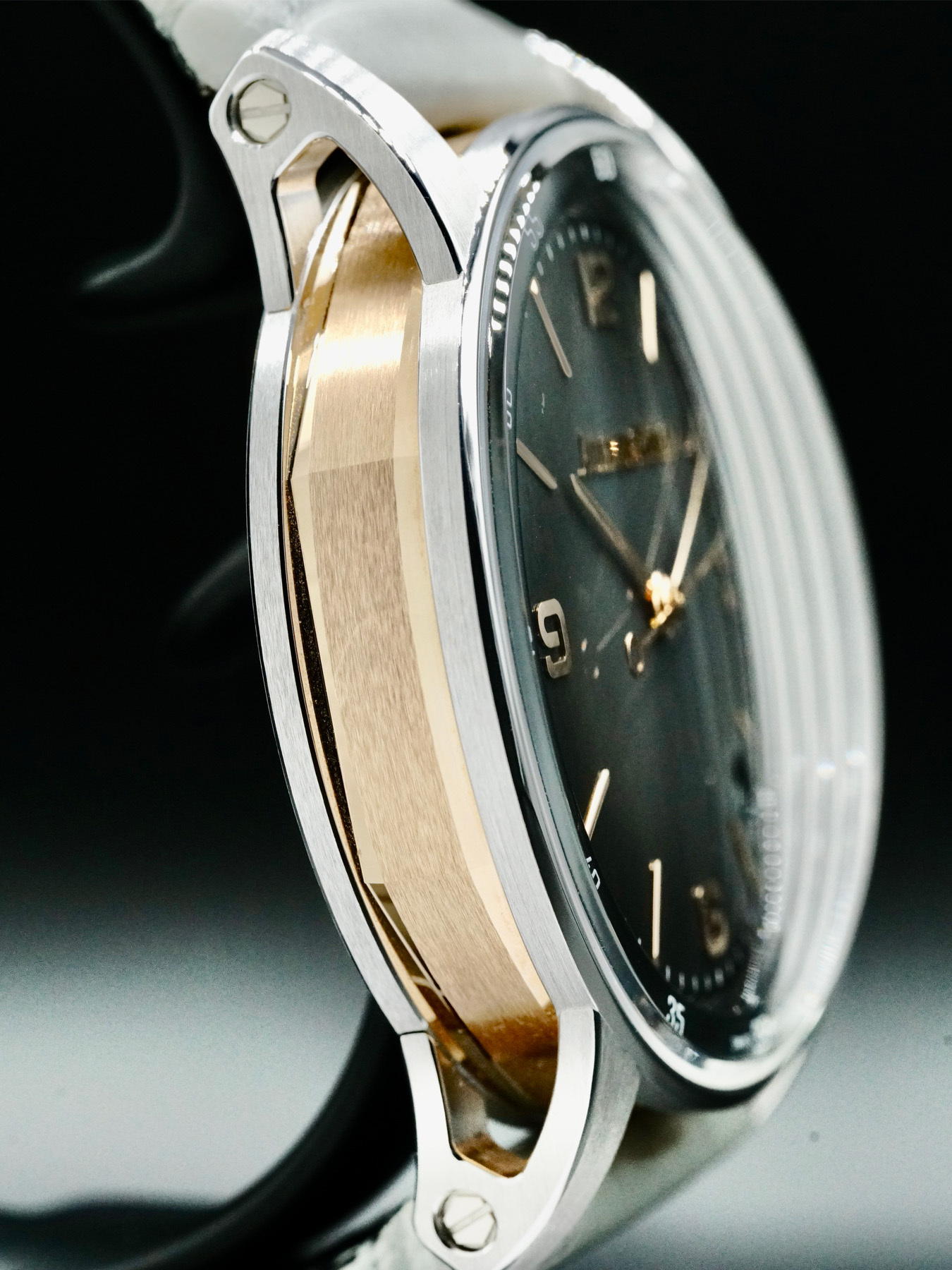 This watch features a 41mm gold case with grey dial. Powered by a Mechanical Automatic Movement. Water resistance up to 30 meters.