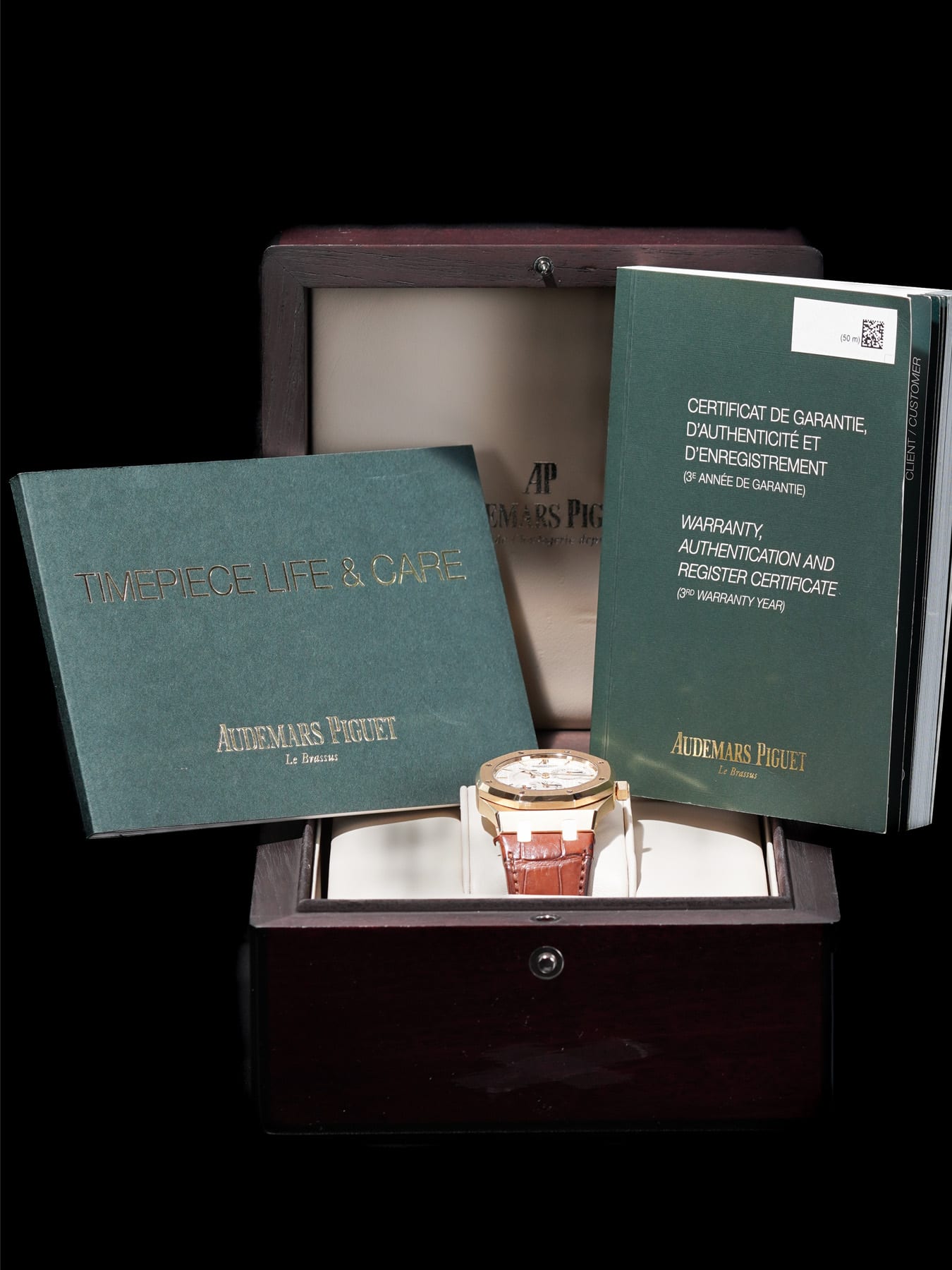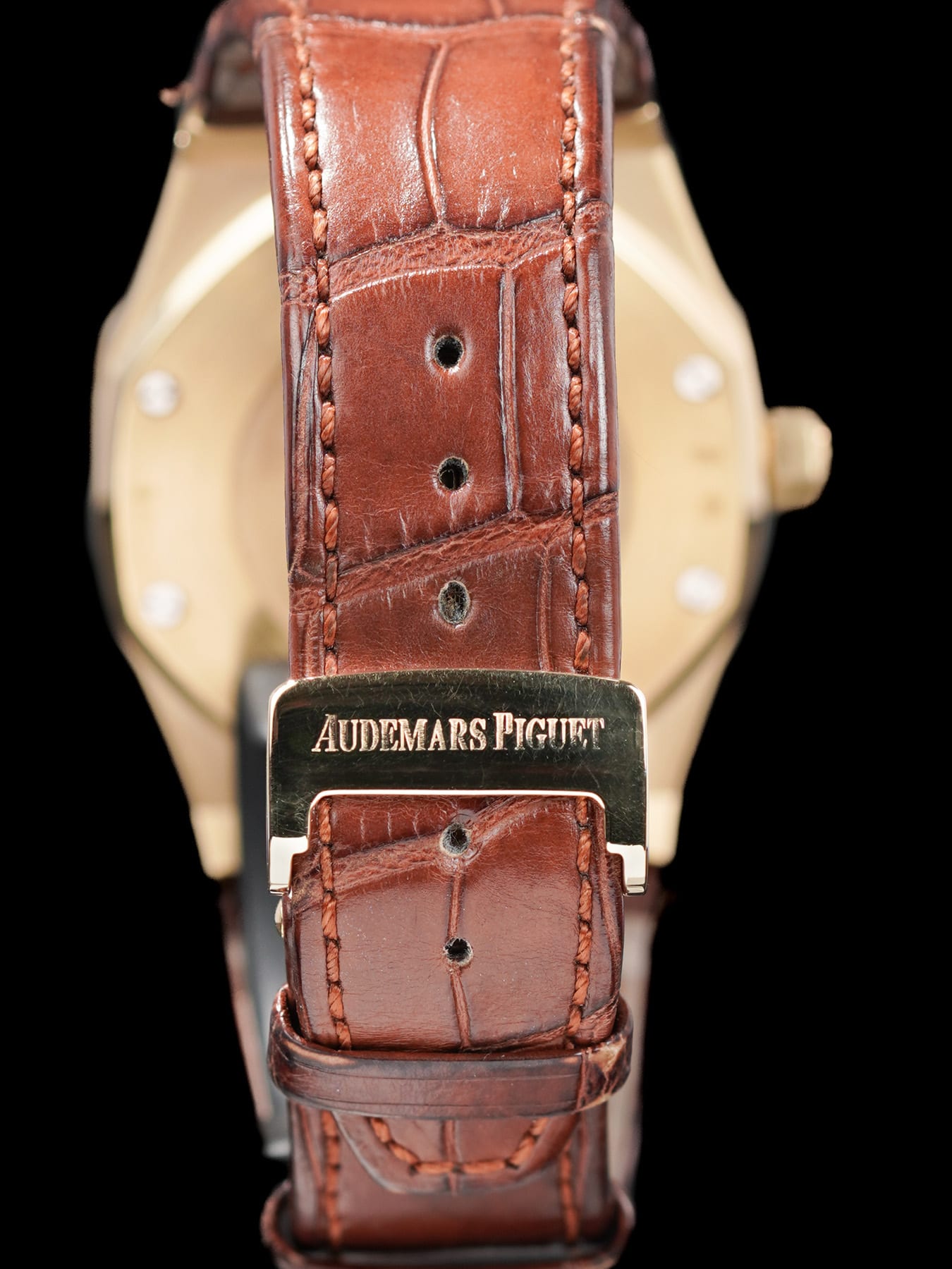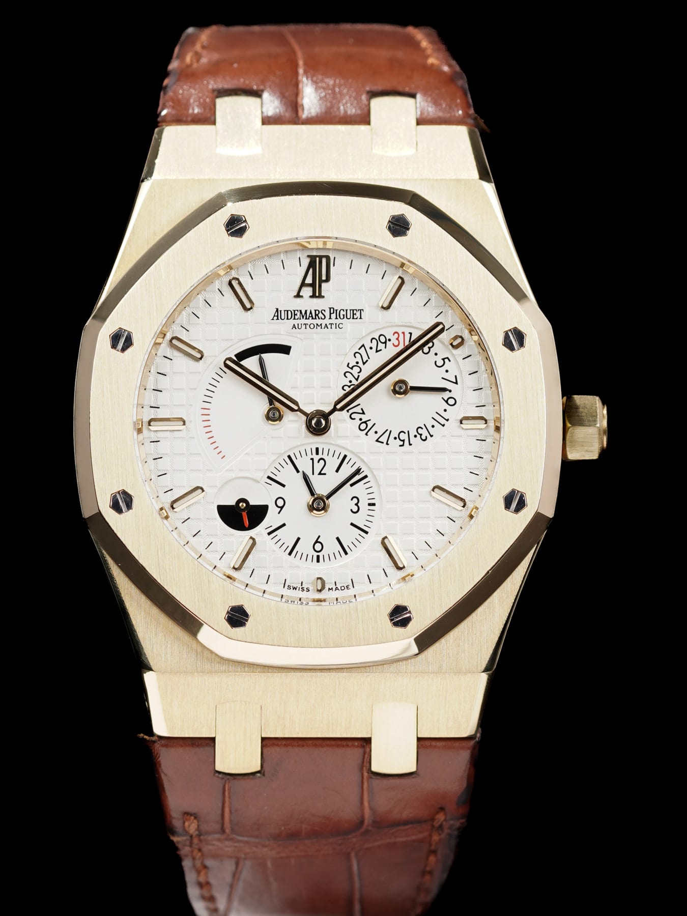 This Audemars Piguet 26120BA.OO.D088CR.01 Royal Oak Dual Time is in GREAT condition. This watch includes its Original Box, Original Papers and Warranty Dated 10/01/2012. This watch has been fully authenticated and certified by Exquisite Timepieces.