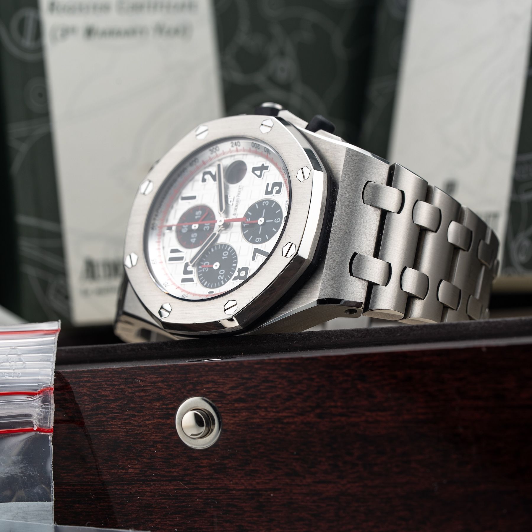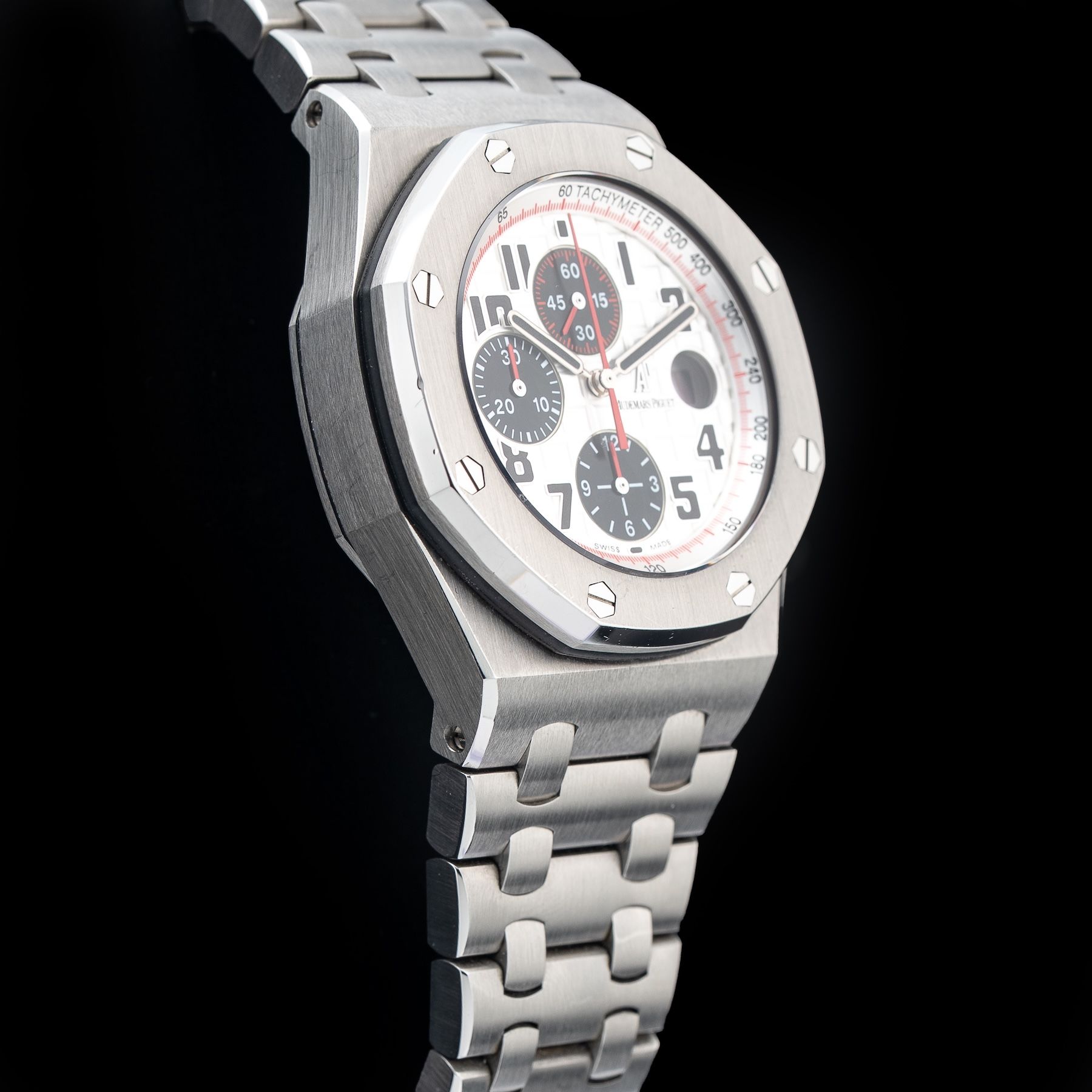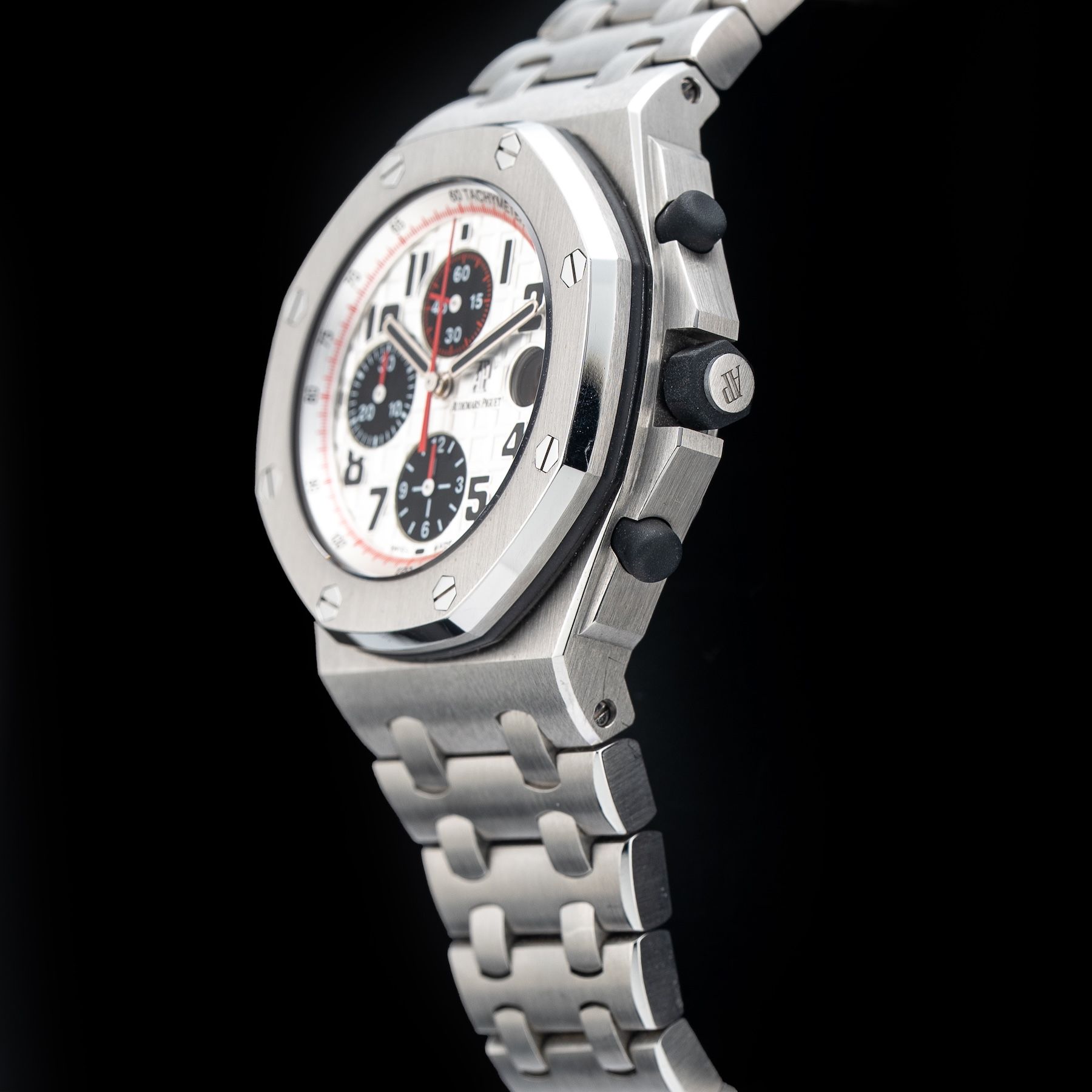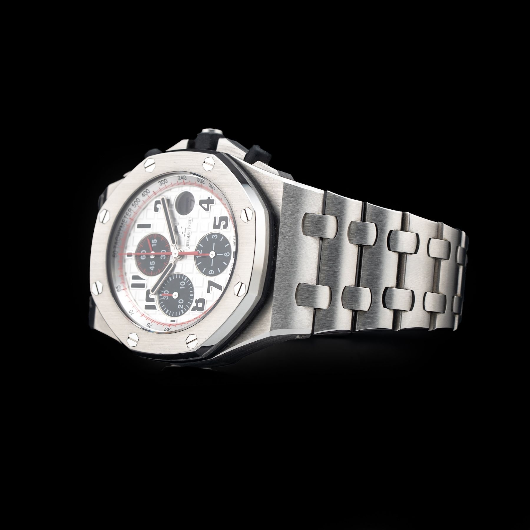 This Audemars Piguet 26170ST.OO.D101CR.02 Royal Oak Offshore Chronograph is in GREAT condition. This watch includes its Original Box, Original Papers, Warranty Card Not Dated and Extra Links in Box. This watch has been fully authenticated and certified by Exquisite Timepieces. Please note, the photos shown are of the actual watch you will receive.