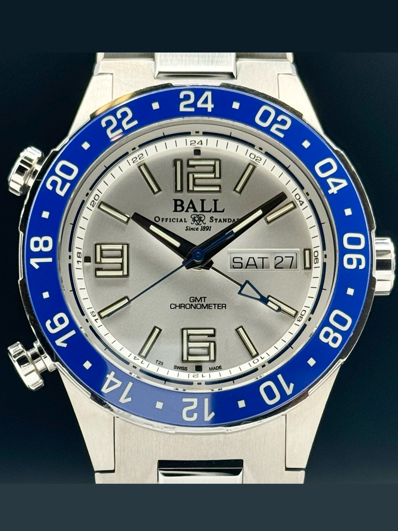This Ball DG3030B-S6CJ-WH Roadmaster Marine GMT is in GOOD condition. This watch includes its Original Box, Warranty 2021 and Extra Links. This watch has been fully authenticated and certified by Exquisite Timepieces.