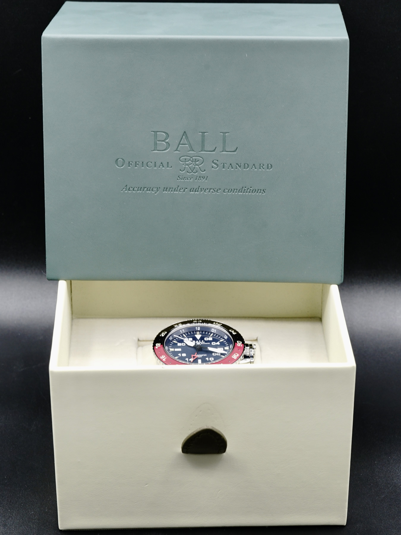 This Ball Engineer Hydrocarbon AeroGMT II DG2018C-S3C-BE is in EXCELLENT condition. This watch includes its original box, owner's manual, COSC certificate, and international warranty certificate.