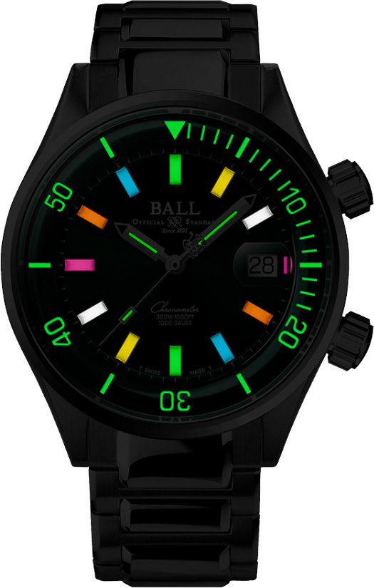 This watch features hands and markers that are illuminated with rainbow micro-gas tubes, adding an extra pop of color to the already striking green dial. The tubes provide excellent night-time visibility, making it easy to read the time in low light conditions. In addition to displaying the hours, minutes, and seconds, this watch also has a date function. Powering this timepiece is a mechanical automatic movement, the Caliber BALL RR1101-C, which is certified by the COSC as a chronometer, ensuring unbeatable accuracy.