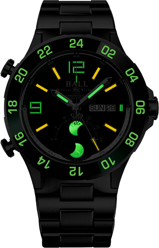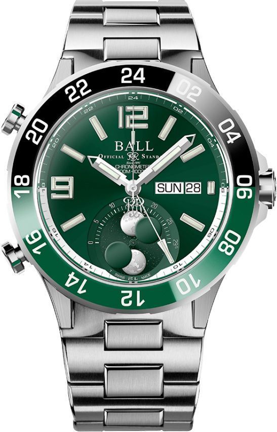 Ball Roadmaster Marine GMT Moon Phase Black Dial on Bracelet