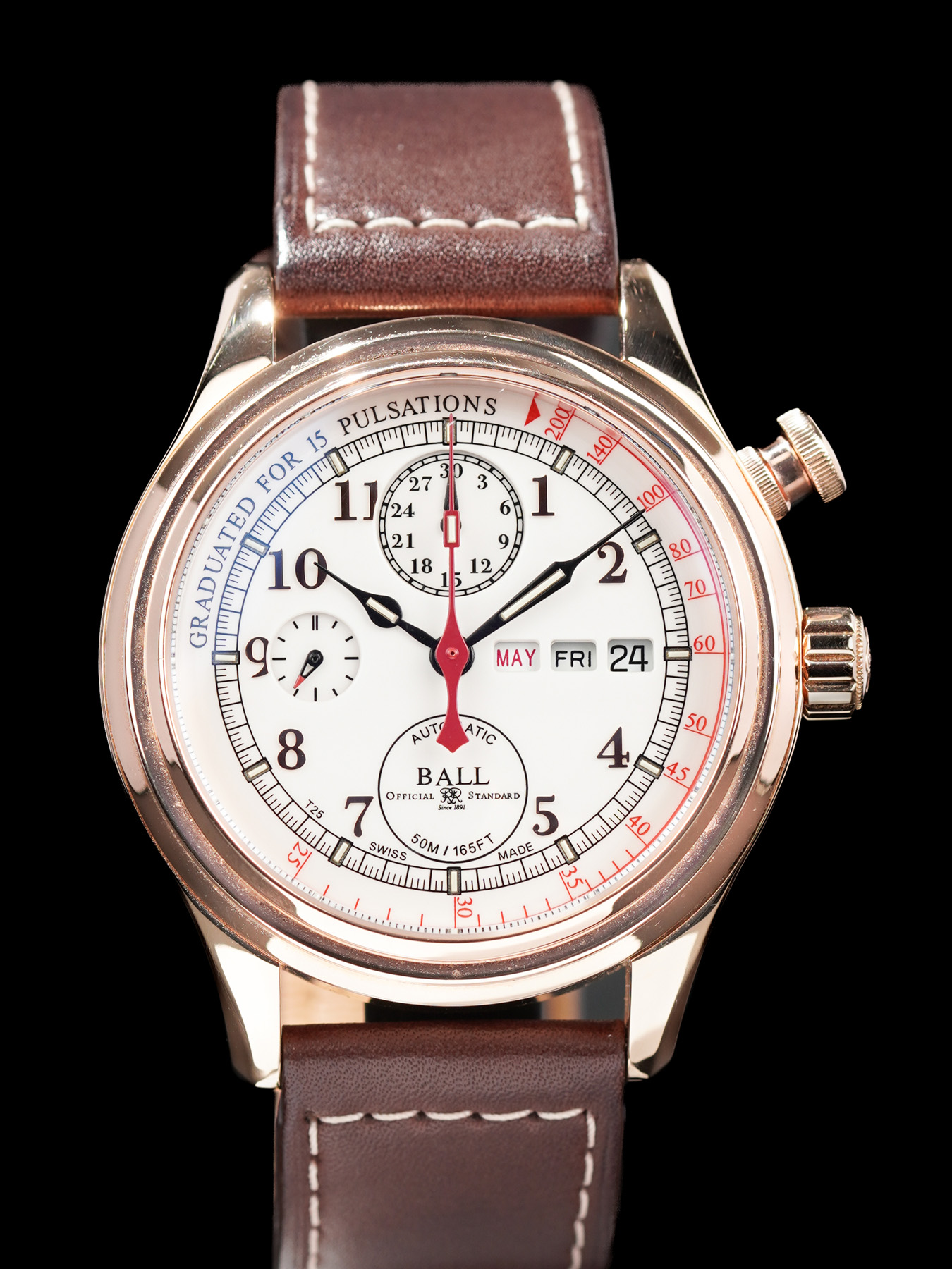 This Ball Watch Trainmaster Doctor Chronograph CM1032D-PG-L1J-WH is in GREAT condition. This watch includes its original box and user manual. No warranty card. This watch has been fully authenticated and certified by Exquisite Timepieces.