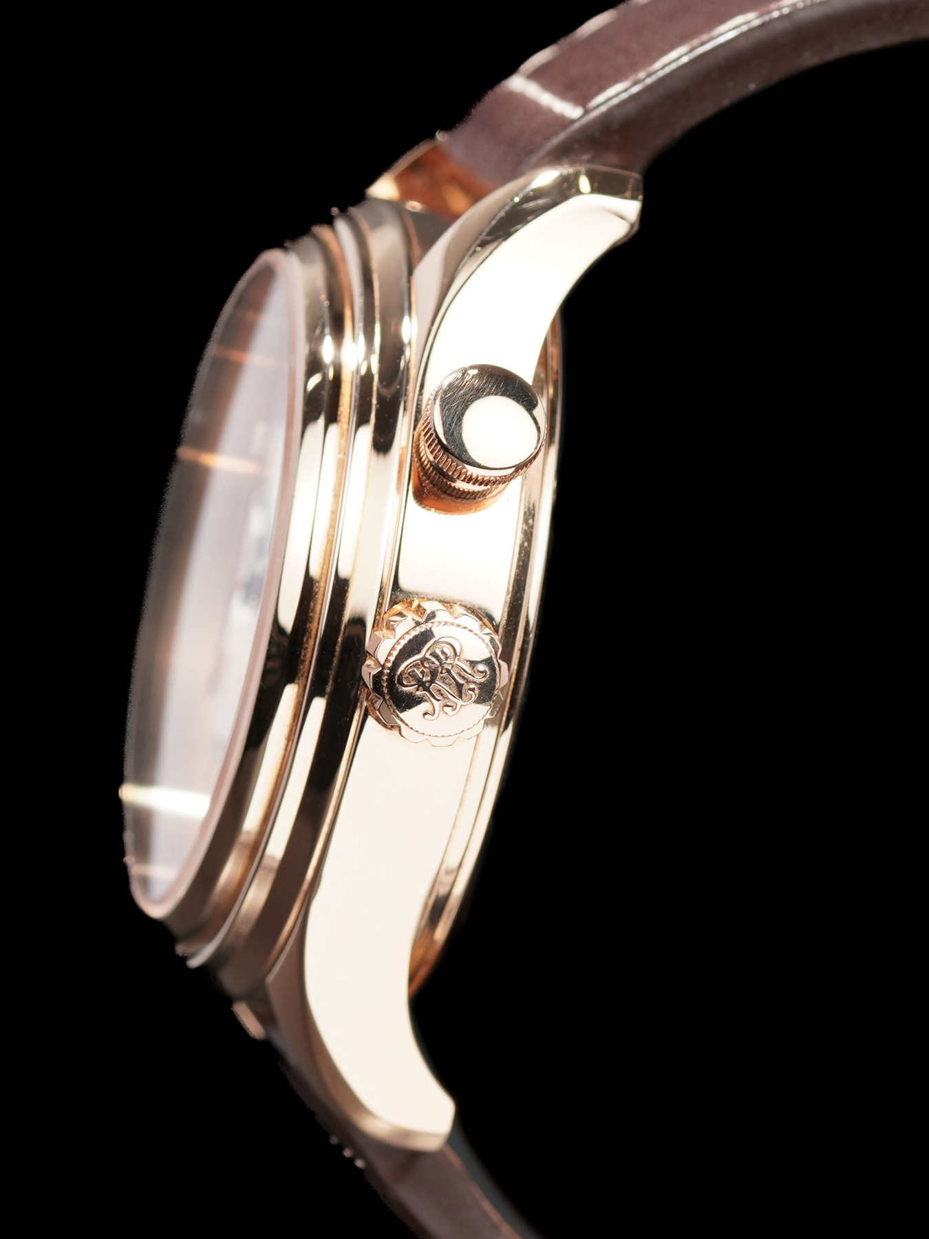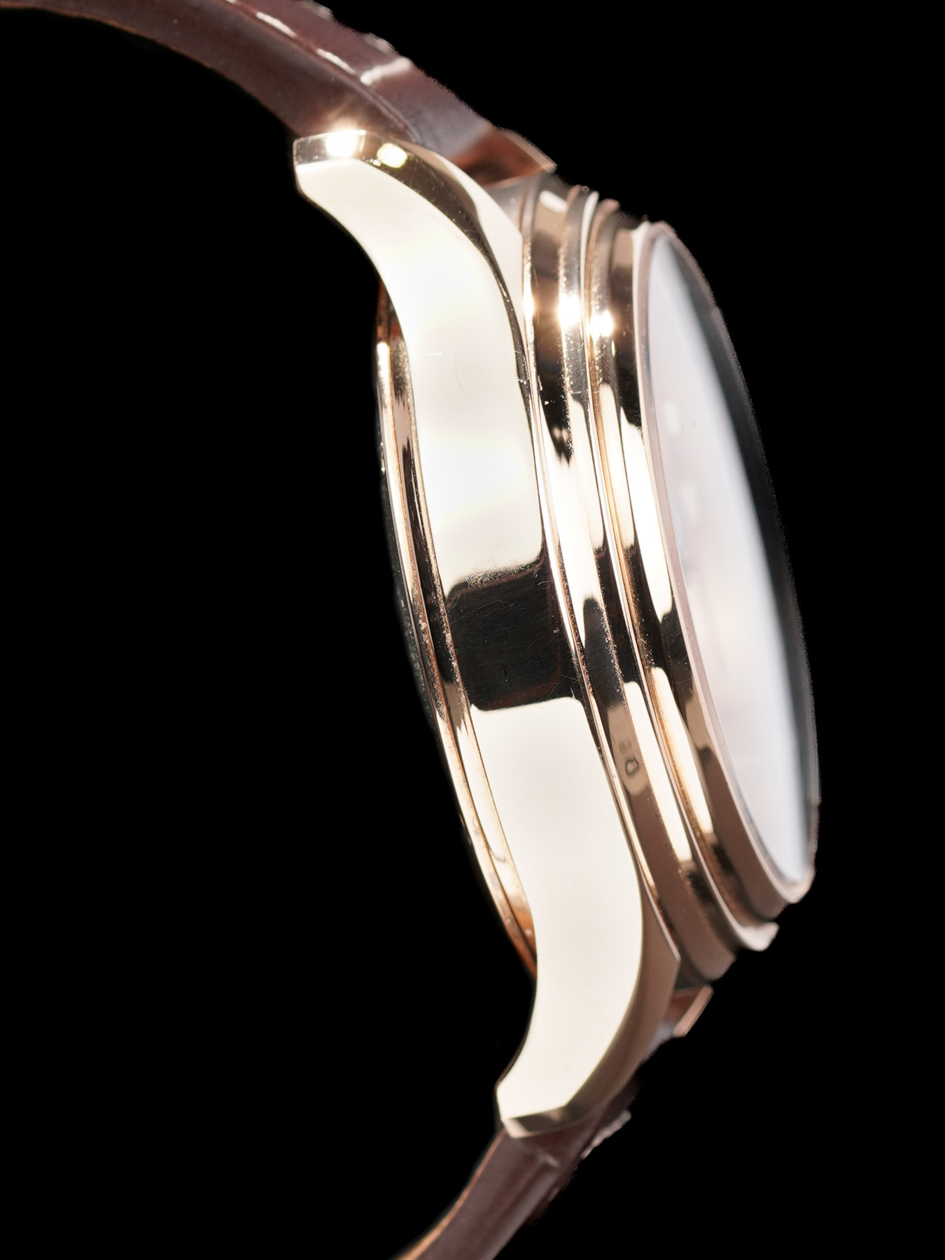 This watch features a 43mm 18kt rose gold case on leather strap. This watch also sports a white dial. Powered by an automatic movement. Water resistance up to 50 meters.