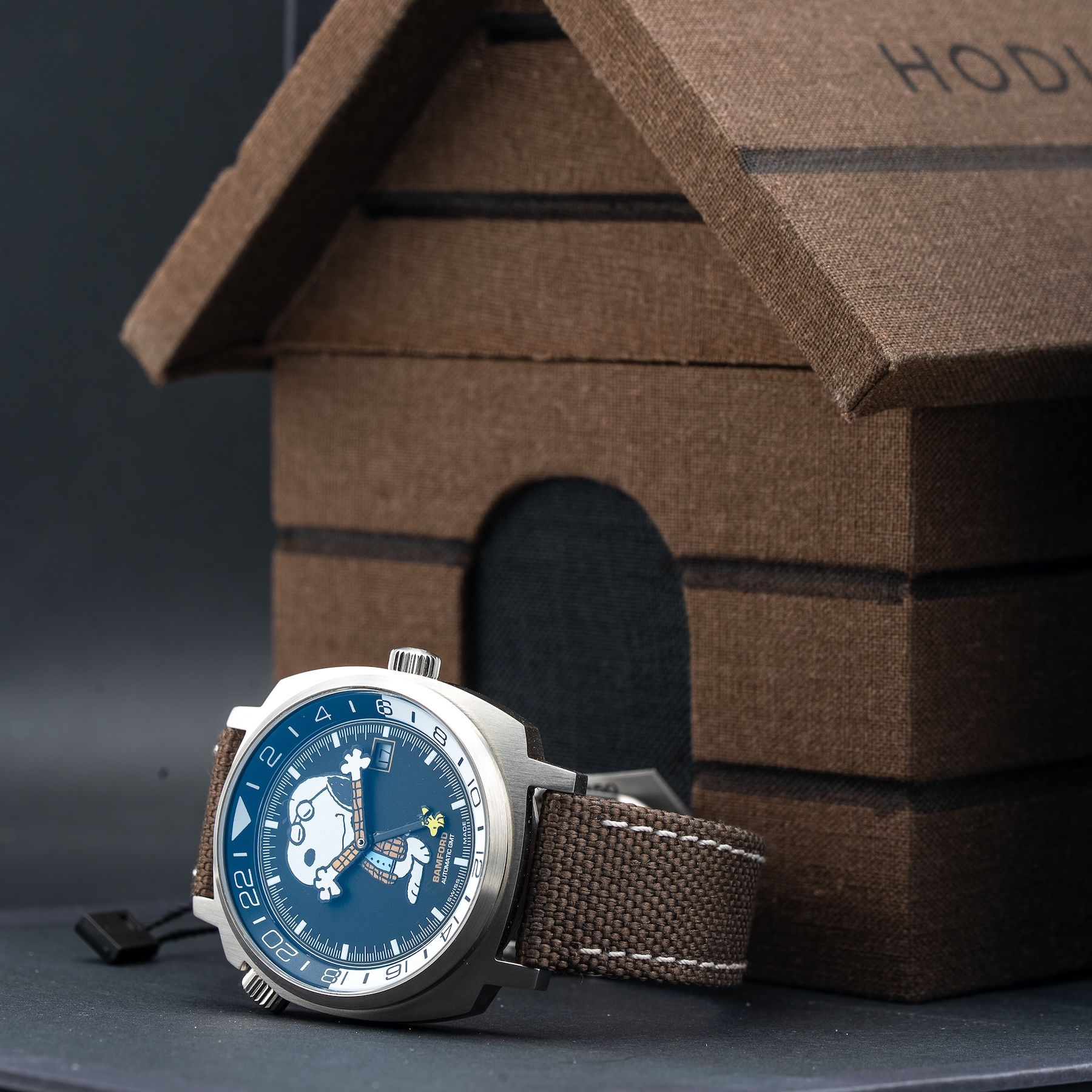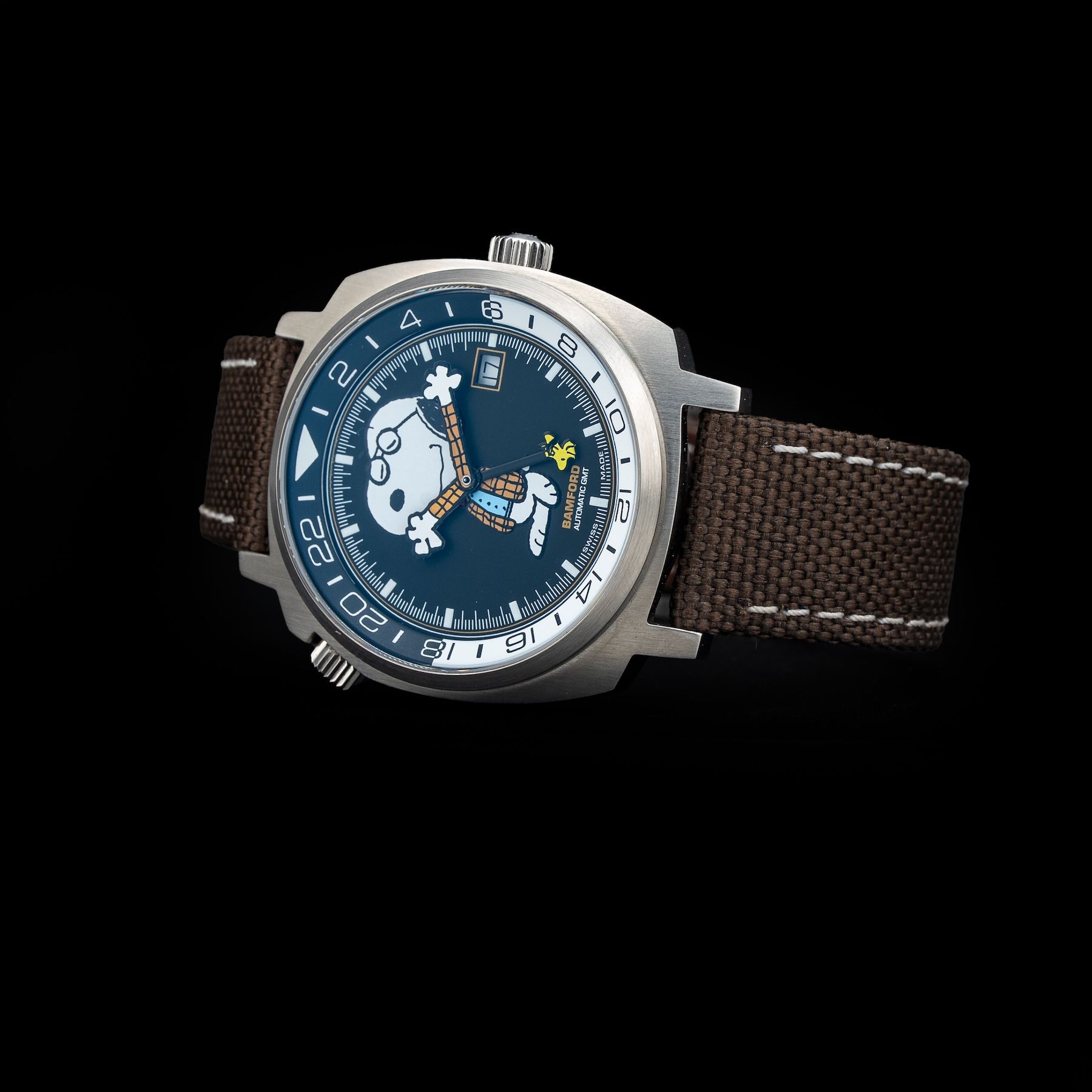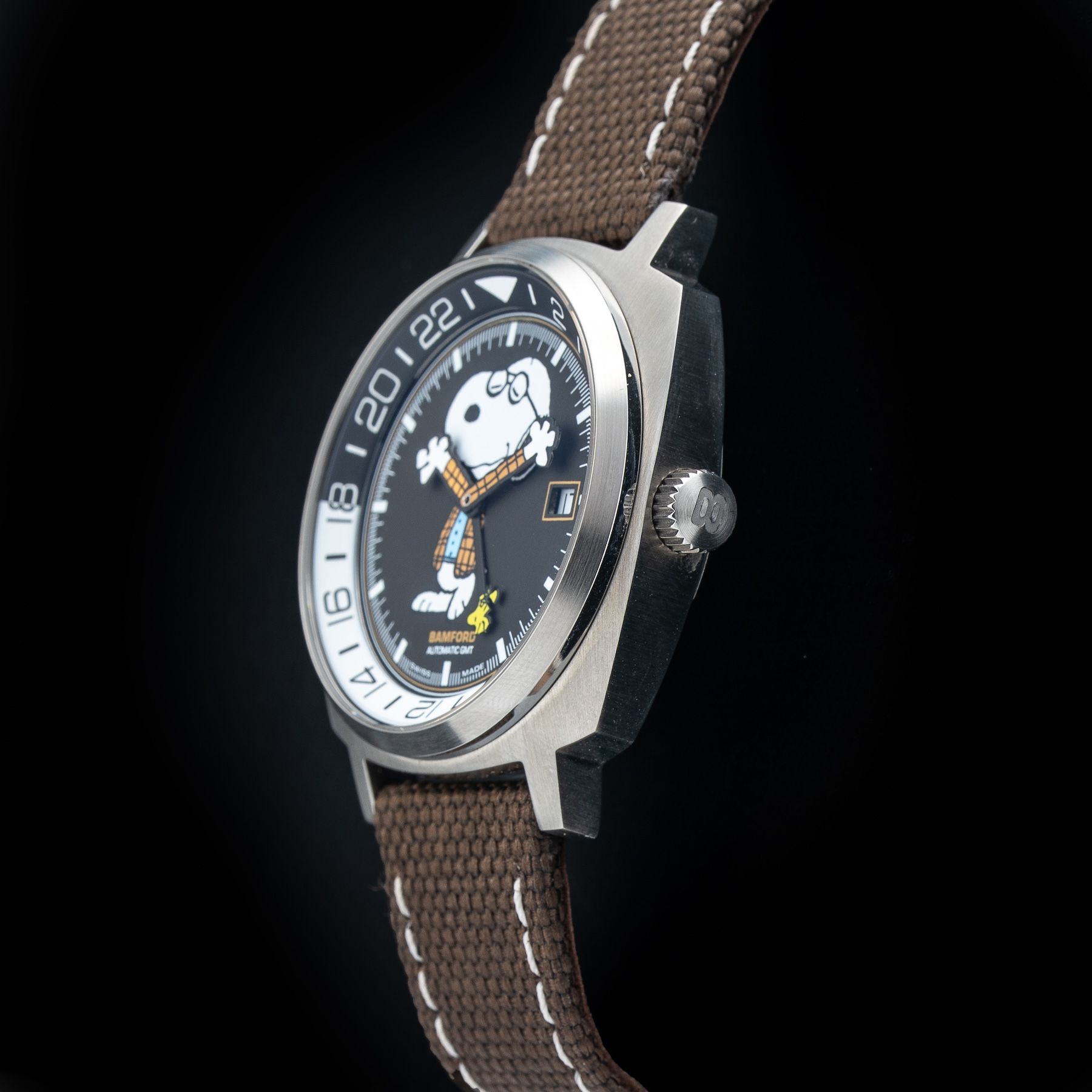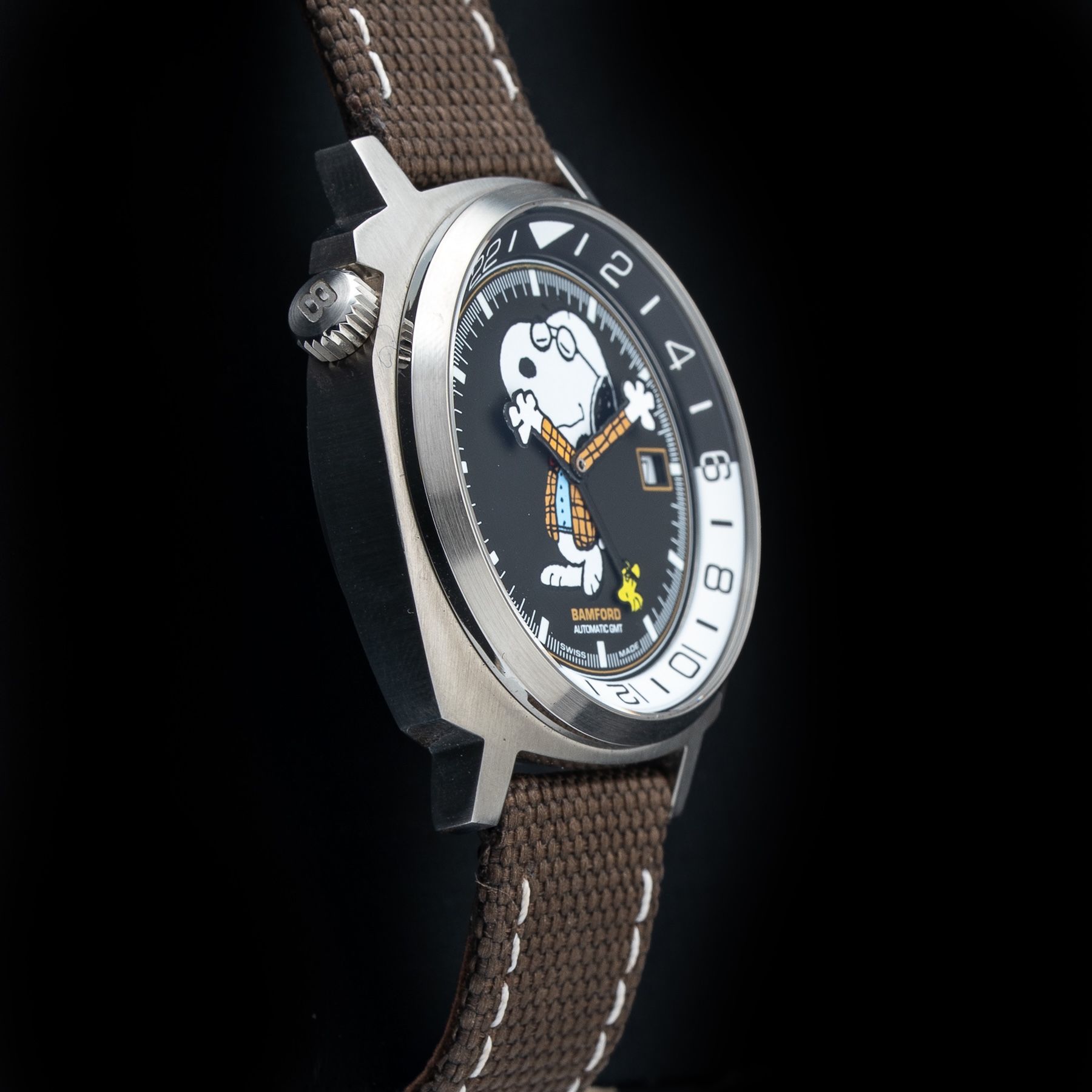 This Bamford Peanuts "Beagle Scout" GMT Limited Edition is in GREAT condition. This watch includes its Original Box, Original Papers. This watch has been fully authenticated and certified by Exquisite Timepieces. Please note, the photos shown are of the actual watch you will receive.