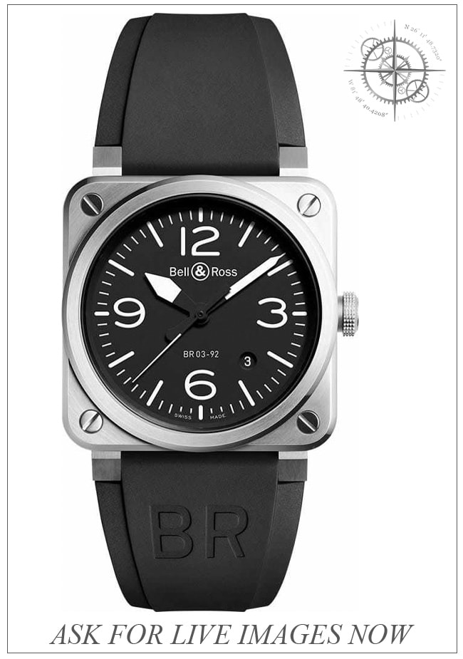 This Bell and Ross BR0392-BL-ST is in GREAT condition. This watch includes its Warranty Dated 07/01/2014, Extra Strap, No Box. This watch has been fully authenticated and certified by Exquisite Timepieces.