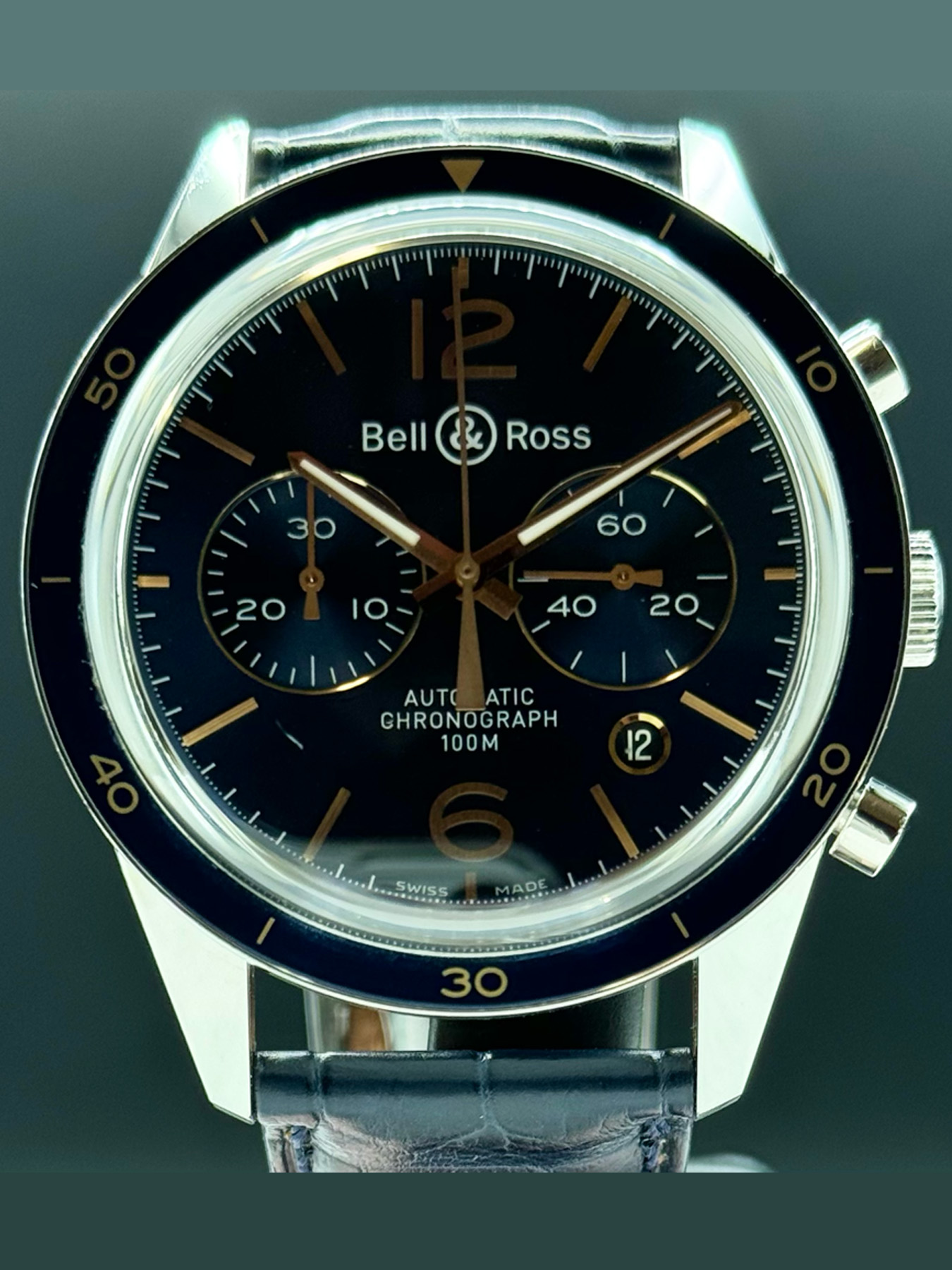 This Bell & Ross BR126-94 Aeronavale Blue Chrono is in GOOD condition. This watch includes its Original Box, Original Papers and Warranty Card Dated April 2017. This watch has been fully authenticated and certified by Exquisite Timepieces.