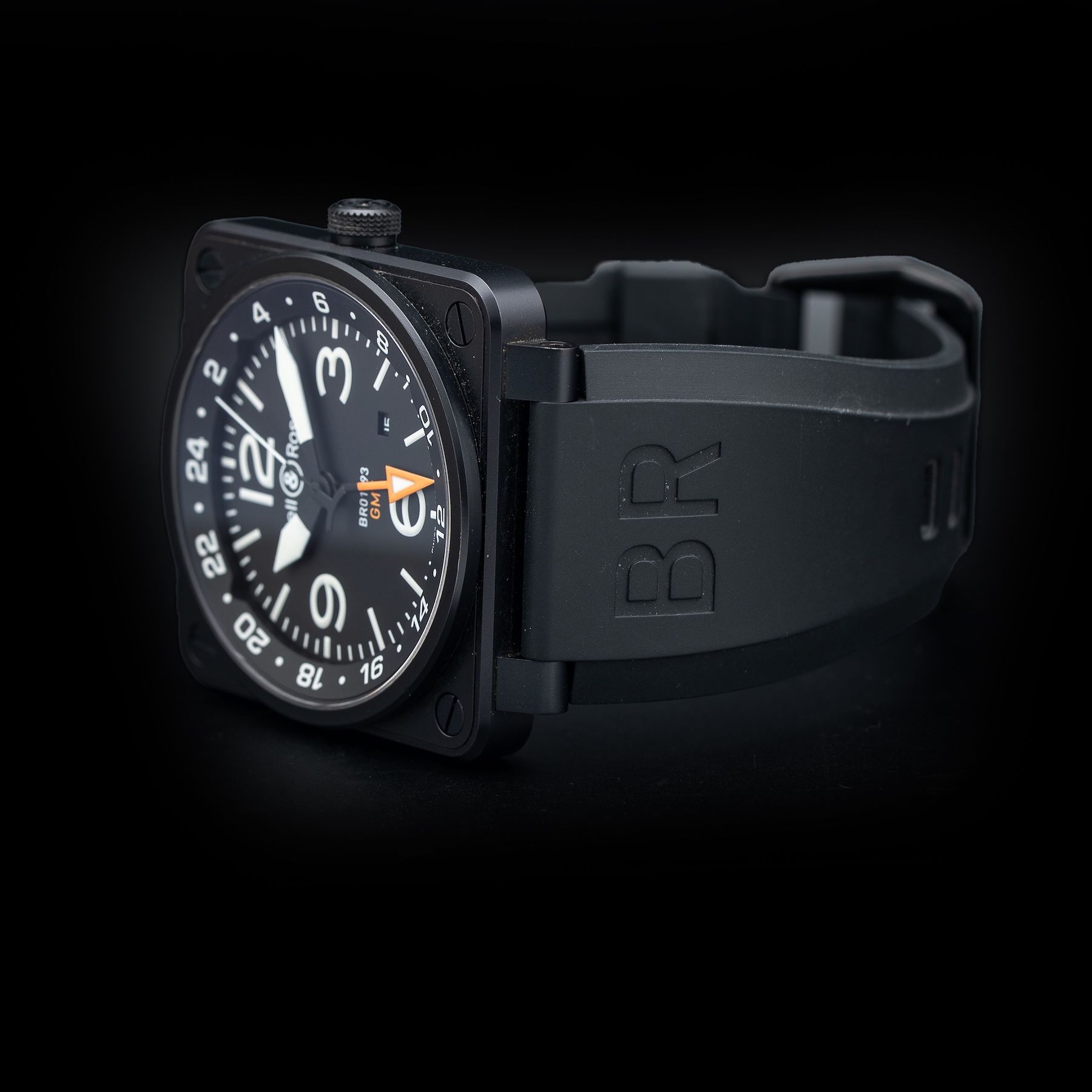 This Bell & Ross BR 01-93-SO GMT is in GREAT condition. No boxes or papers. This watch has been fully authenticated and certified by Exquisite Timepieces. Please note, the photos shown are of the actual watch you will receive.